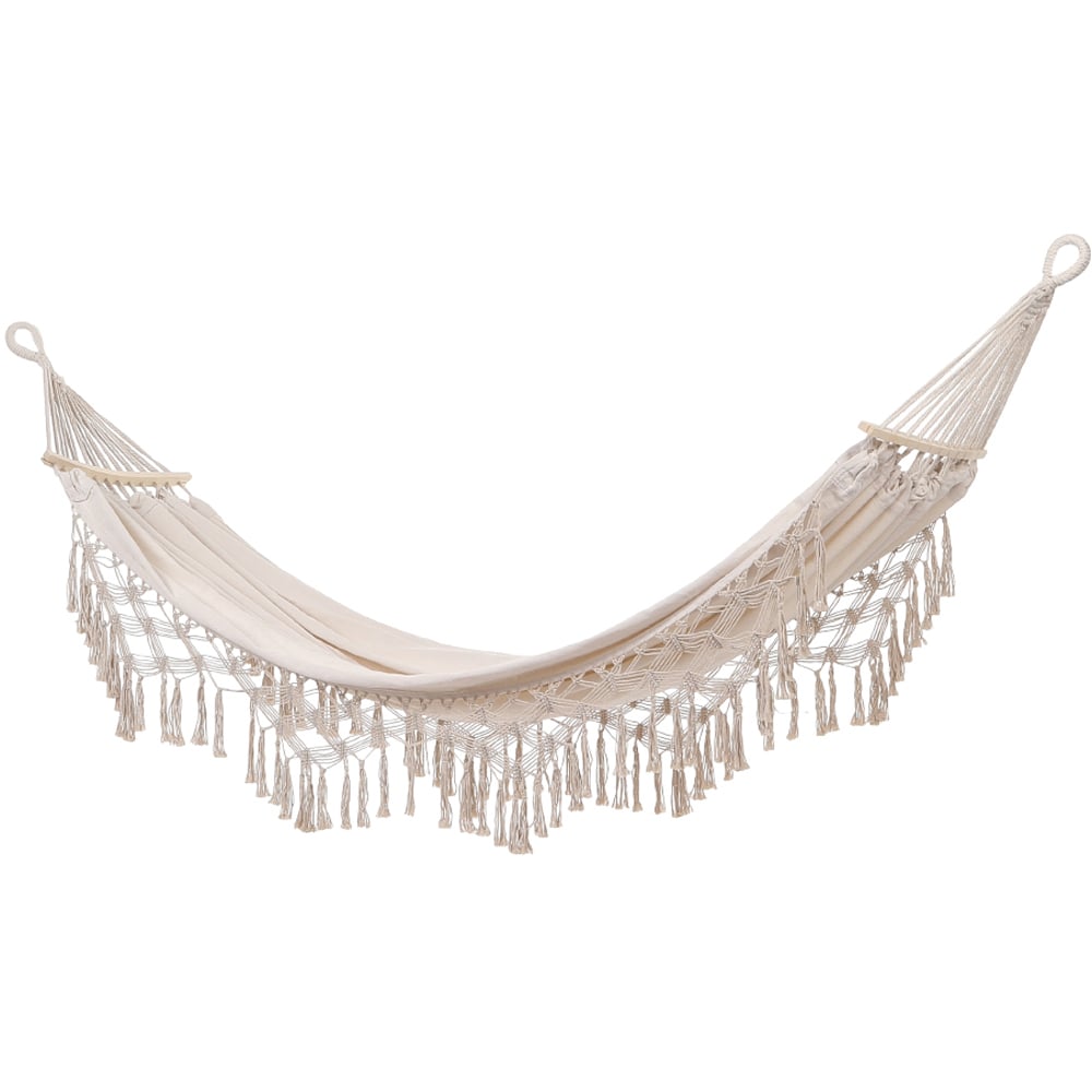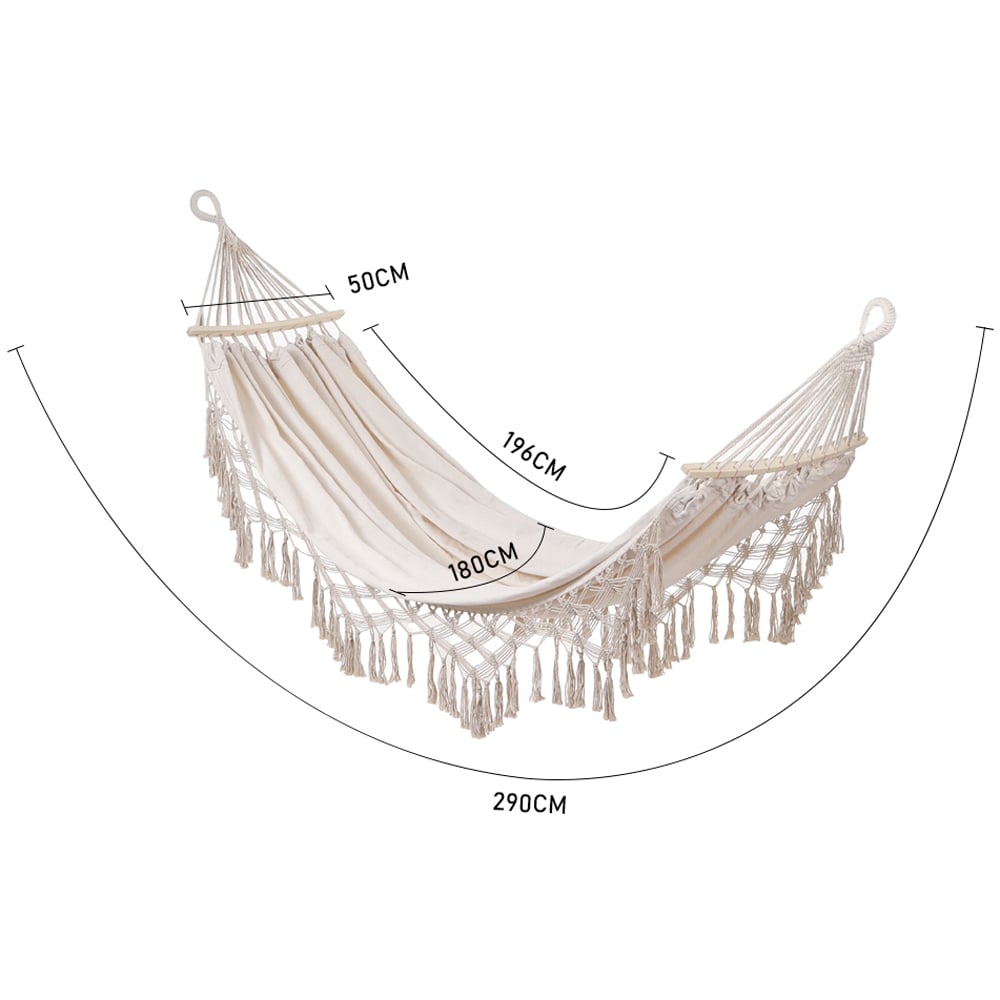 Make the most of your summer with this Exotic Hammock, designed for comfort and durability. Made from breathable canvas, it offers exceptional wear and tear resistance, ensuring long-lasting enjoyment. The hammock features solid wood spreader bars, enhancing stability during rocking or swinging to prevent any accidental tipping. Large, sturdy knots at both ends ensure safe and smooth use. With ample space, it comfortably accommodates two people, perfect for creating cherished memories with family and friends in the great outdoors.