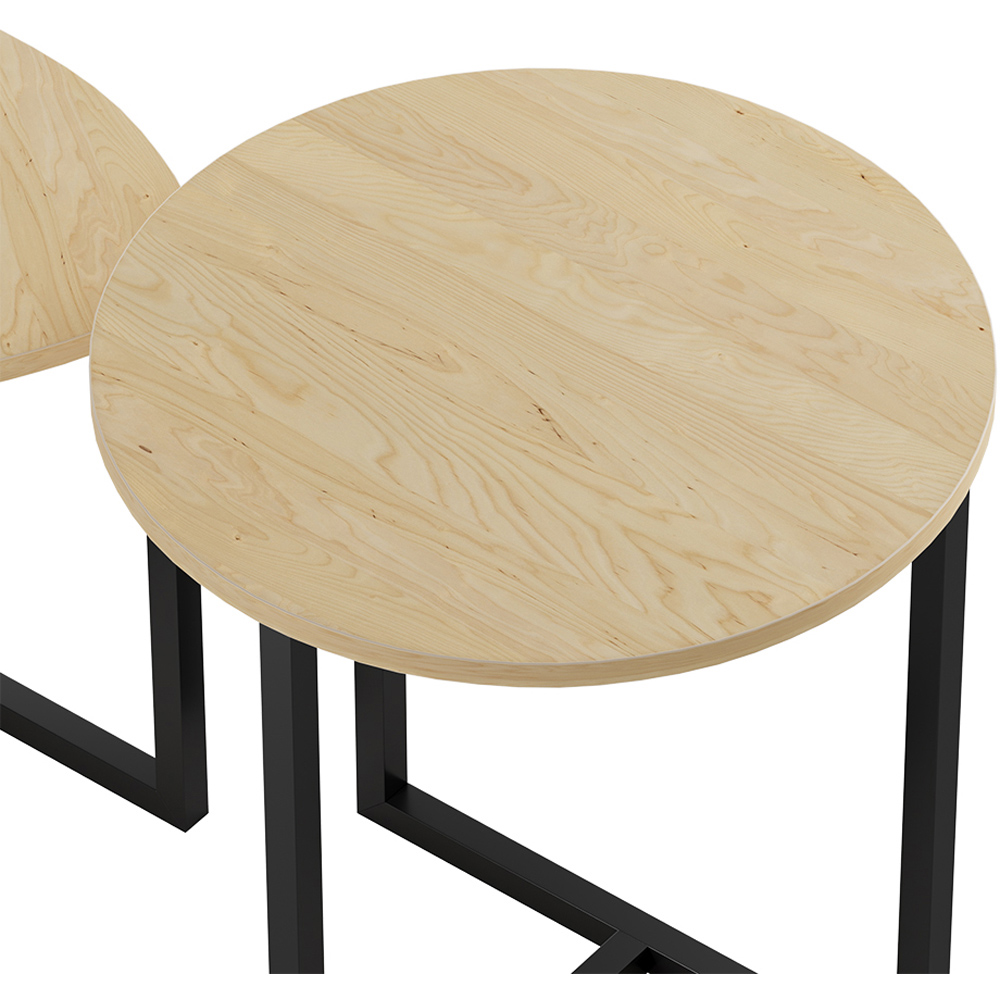 This nesting table set perfectly combines modern aesthetics with practical design. Featuring a round table and a triangular table, the unique asymmetrical shapes add visual interest and complement a variety of interior styles. Use them together for a layered effect or separately to save space. The light-toned tabletops bring warmth and blend effortlessly with décor ranging from modern to rustic. Supported by a distinctive frame structure, the tables offer enhanced stability and a subtle industrial charm. Ideal as side tables by the sofa, nightstands in the bedroom, or stylish display surfaces for your favourite décor items.
