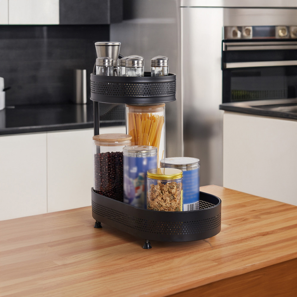 Living and Home Black 2 Tier Metal Kitchen Rotating Spice Rack