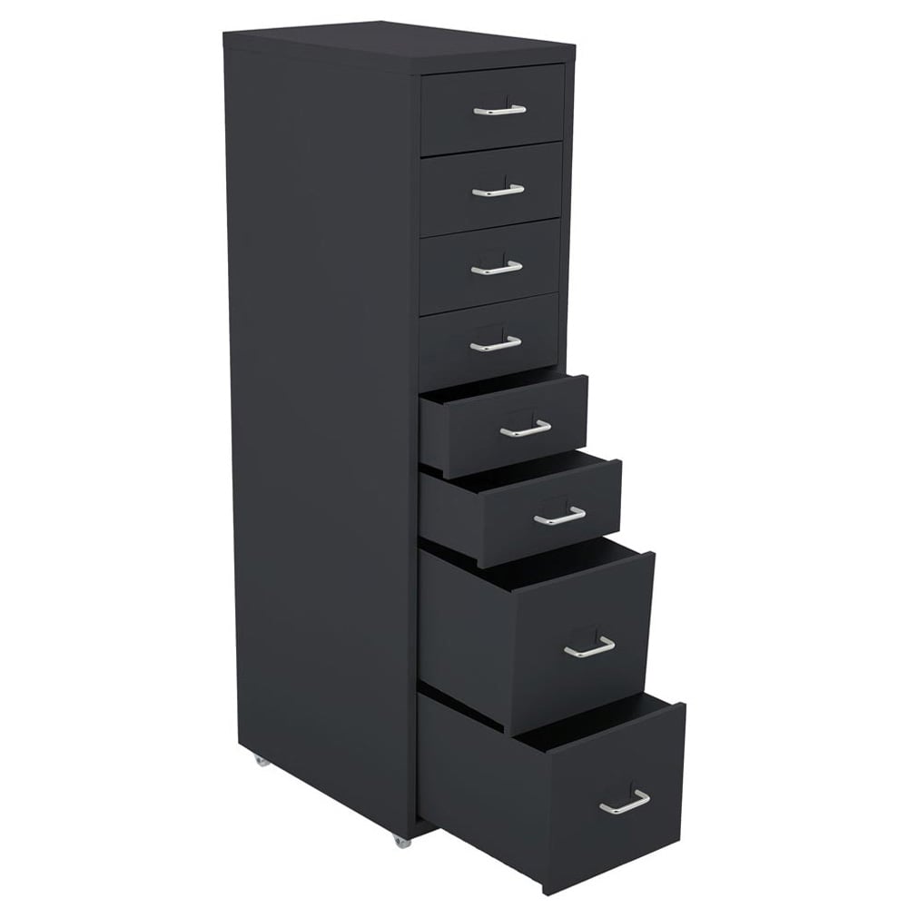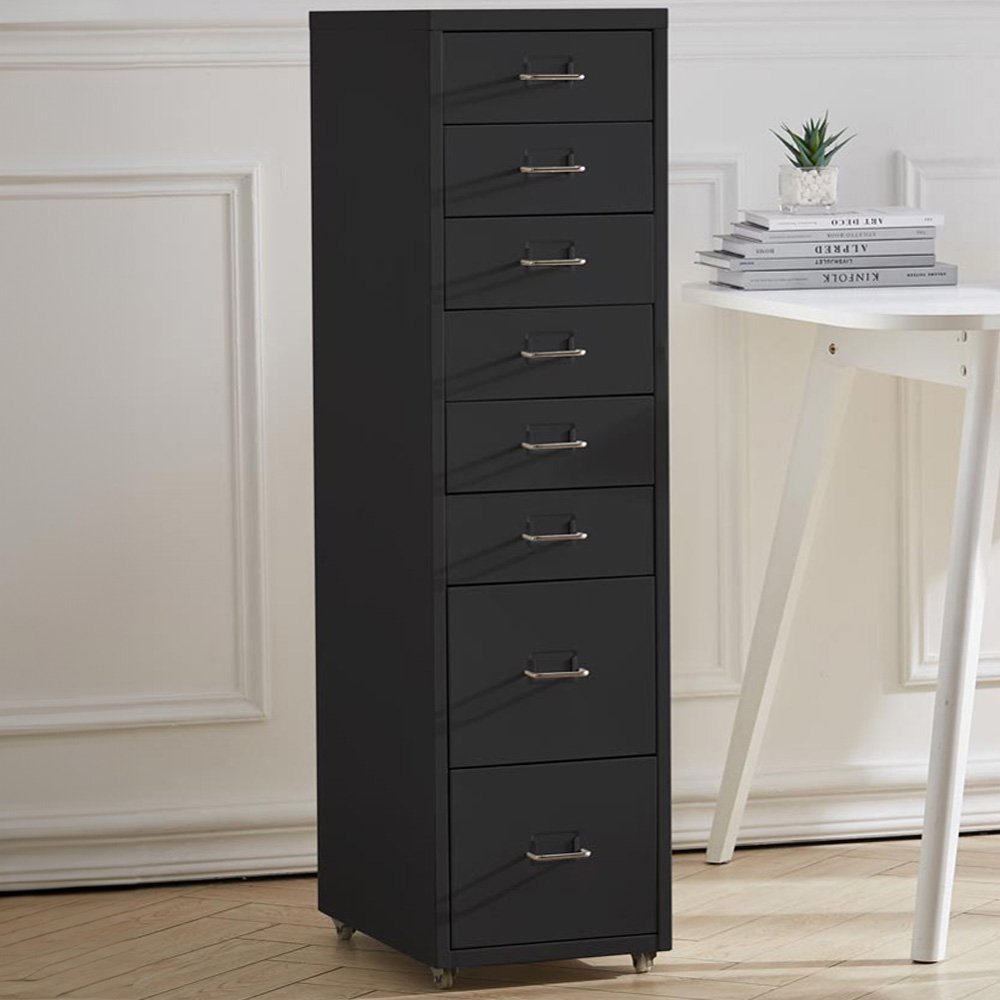 Transform the way you organise with the Living and Home Black 8-Tier Vertical File Cabinet. This sophisticated file cabinet is perfect to store and organise your documents, files and letters. Crafted from selected metal, it features a solid construction and is durable enough to hold heavy papers. Easy to use, the drawers can slide smoothly and quietly for your optimum usage experience. Plus, each drawer has a label slot at the front that helps you classify your files. Simple to manoeuvre, the cabinet comes with wheels for effortless shifting. Having it at the corner of your office will surely boost your working efficiency and professional image. Size: 109.1 x 28 x 41cm.