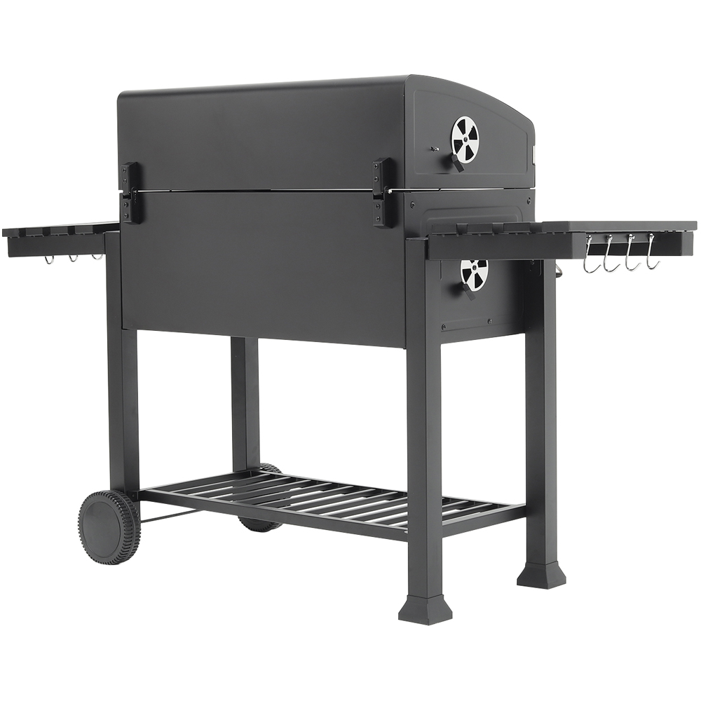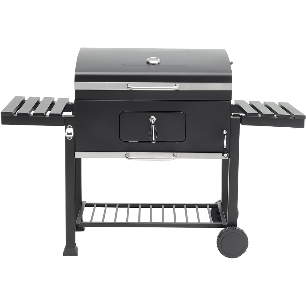 Unleash your inner grill master with the Living and Home Black BBQ Grill with Side Table. Built for durability, this grill serves as a dependable cooking platform for all your outdoor feasts. Effortlessly manoeuvre it thanks to the convenient rolling wheels, while the height-adjustable charcoal pan makes grilling a breeze. Don't worry about the mess; the draw-out ashtray efficiently collects ash and dirt, ensuring your grilling area stays clean.
