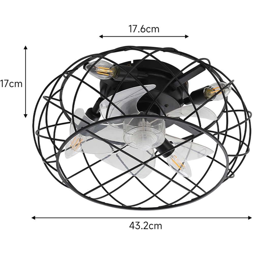 Living and Home Black Cage Ceiling Fan with Light and Remote