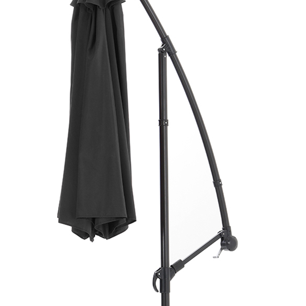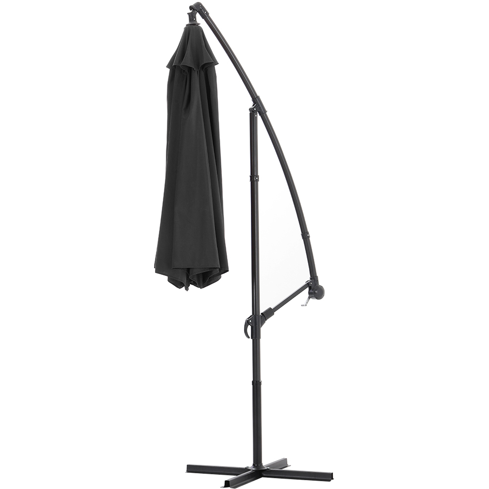 Add a stylish and comfortable touch to your outdoor space with this Livingandhome 3m Black Cantilever Parasol with Cross Base. With this lovely parasol, you can enjoy a comfortable time in your garden. Sturdy and safe, the shade is waterproof and UV-resistant, and it not only provides shelter for you when it rains but also keeps you cool under the hot sun. Featuring high-quality 180g polyester fabrics with top vents and an optional base, this parasol makes a perfect addition to your garden areas. Easy to use, simply lift the slider to extend your parasol outward. Also, with a 3-metre diameter, this hanging garden parasol effortlessly hangs over your dining set or garden setting. Apart from this, it perfectly complements your rattan furniture or outdoor dining table. For added convenience, it includes a crank winding mechanism to open and close the parasol without hassle. Additionally, the inclination angle of the umbrella is adjustable for maximum ease. Material: 8 ribs, 48/42mm metal pole, 180g polyester fabric cover. Pole: 48 x 1mm. Base: 70 x 70cm. Size: 3 x 2.6m. Looking for a way to keep your parasol secure and protected and enjoy some shade? Check out our selection of