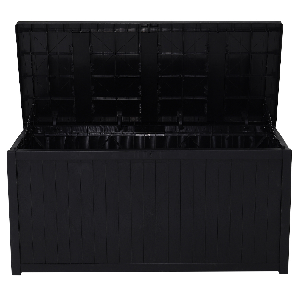 Tame all your outdoor tangle with the Living and Home Black Cushion Storage Box. This heavy-duty storage box is your secret weapon for a clean and organised storage space. The storage box is crafted from high-quality PP material, ensuring a weatherproof build. Integrated handles make it a breeze to move the box around. Keep your belongings safe and secure with the handy lockable lid.
