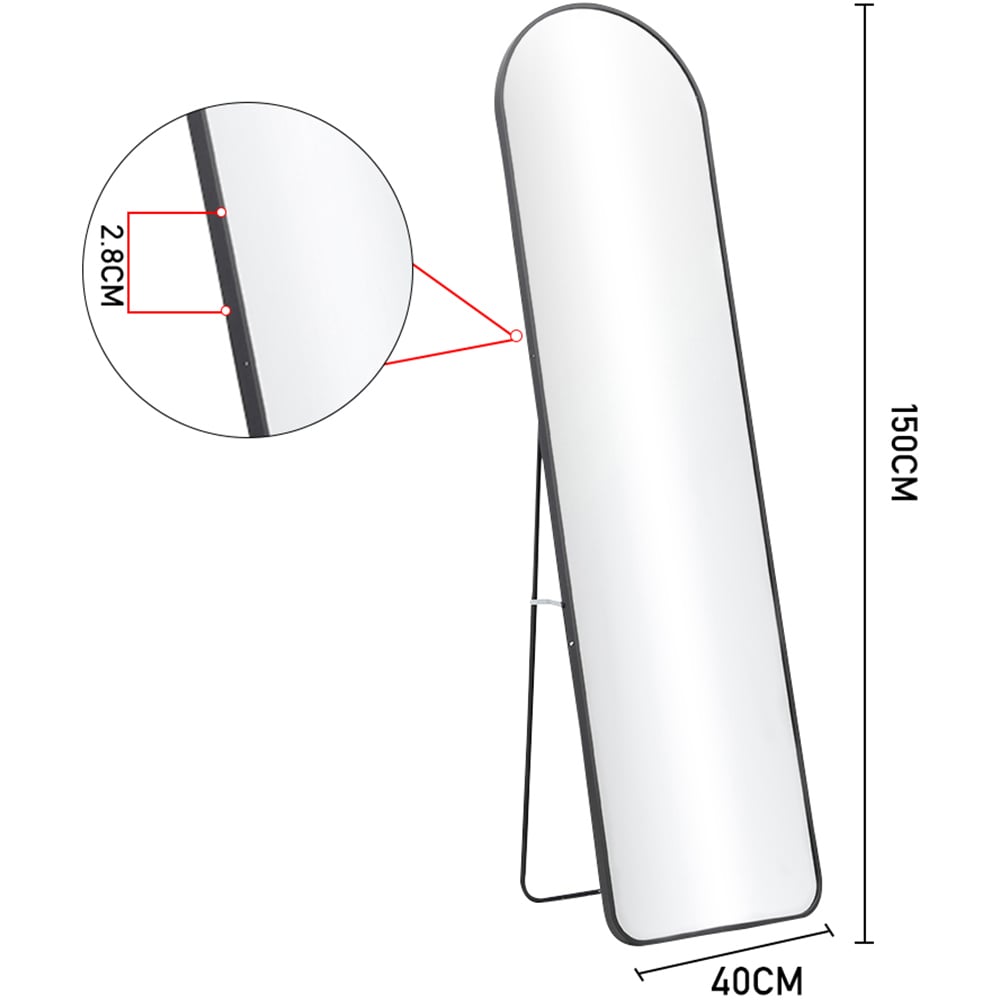This stunning Living and Home Full-Length Standing Mirror enhances the charm wherever it is settled. Crafted with meticulous attention to detail, this mirror combines a sleek, modern design with a classic arched shape to create a captivating focal point in any room. Its black metal frame adds a touch of sophistication and versatility, allowing it to seamlessly blend with various interior styles. Whether placed in the bedroom, living room, or hallway, this floor mirror exudes a sense of timeless beauty. Size: 40 x 150cm.