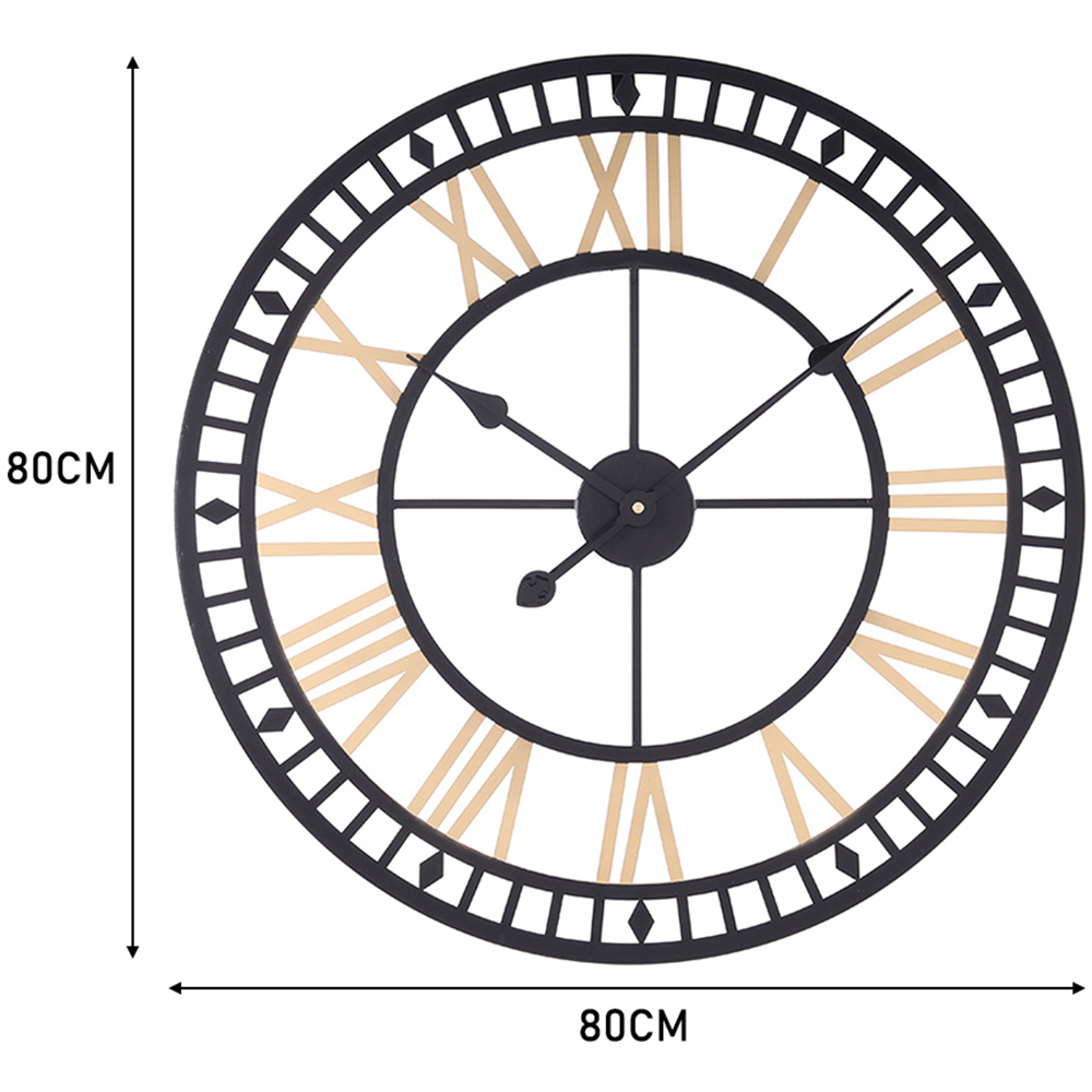 Living and Home Black and Gold Roman Round Metal Wall Clock 80cm