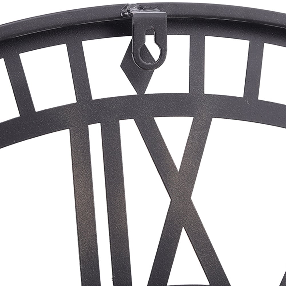 Make a beautiful addition to your home with the Living and Home Black and Gold Roman Round Metal Wall Clock 80cm. This clock features clean, minimalist lines that infuse your home and walls with nostalgia. It has a trendy hollow design that adds a touch of elegance. The golden Roman numerals symbolize the value of time, and the precise dial design allows for minute-by-minute readability. The black iron frame accentuates the overall prominence and subtly reminds you of the relentless passage of time. Dimensions: H5.5 x W80 x D80cm.