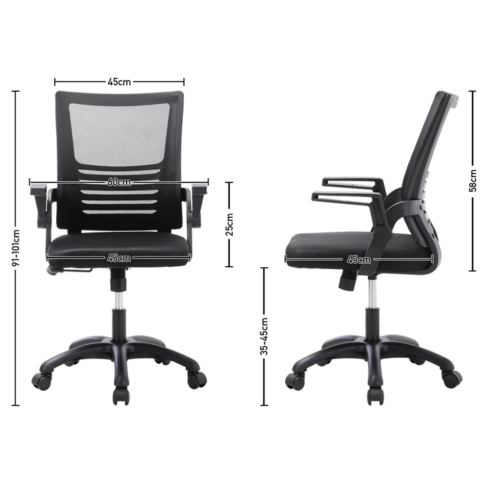Go for an office chair that offers both style and comfort with the Living and Home Black Mesh Swivel Office Chair. It features a curved back and adjustable height to fit your body line and ensure comfortable seating. Padded with high-density foam and wrapped in breathable mesh fabric, this chair delivers an ergonomic seating experience, even during long work hours. The gas lever under the seat allows for easy height adjustment to match your desk.
