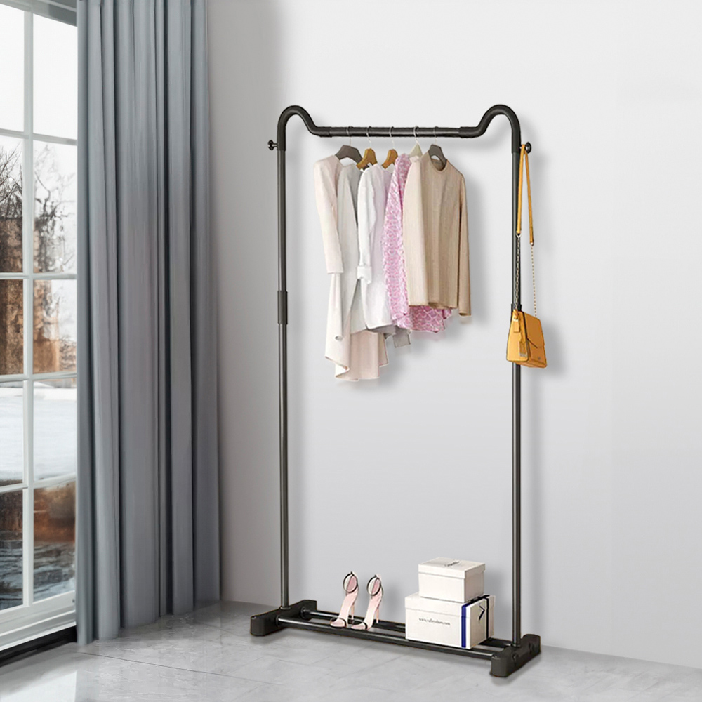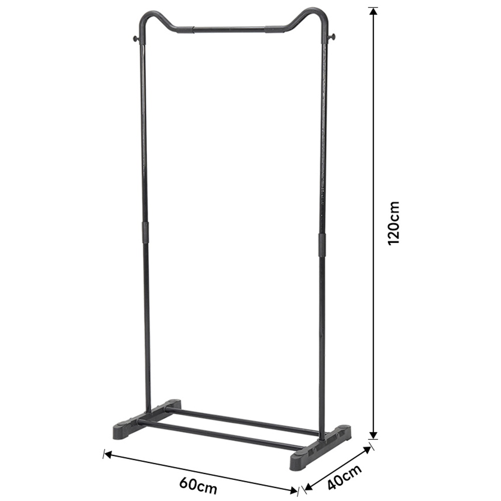Discover the perfect solution for organising your outfits with the Living and Home Black Metal Freestanding Garment Rack. It has a space-saving design that is ideal for small bedrooms or entryways with a top rail for hanging clothes and a lower crossbar for keeping shoes. This sturdy rack has a strong load-bearing capacity with a charming cat ear design. It features a rust-resistant metal pipe construction that ensures durability and longevity.