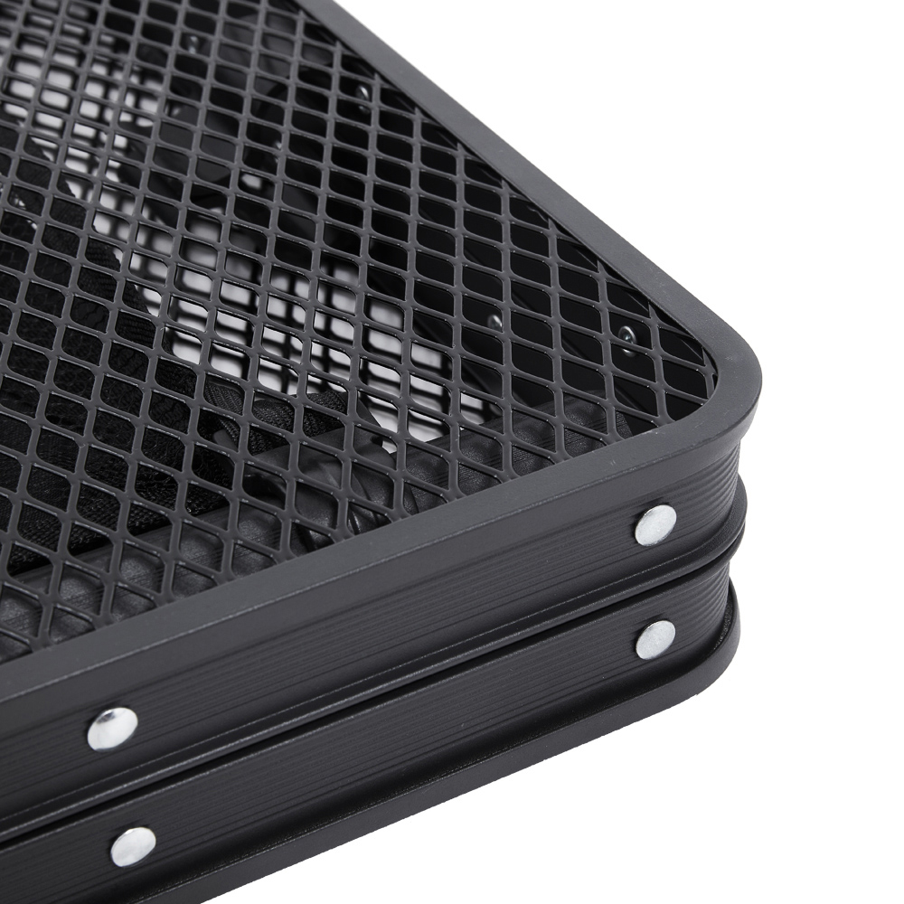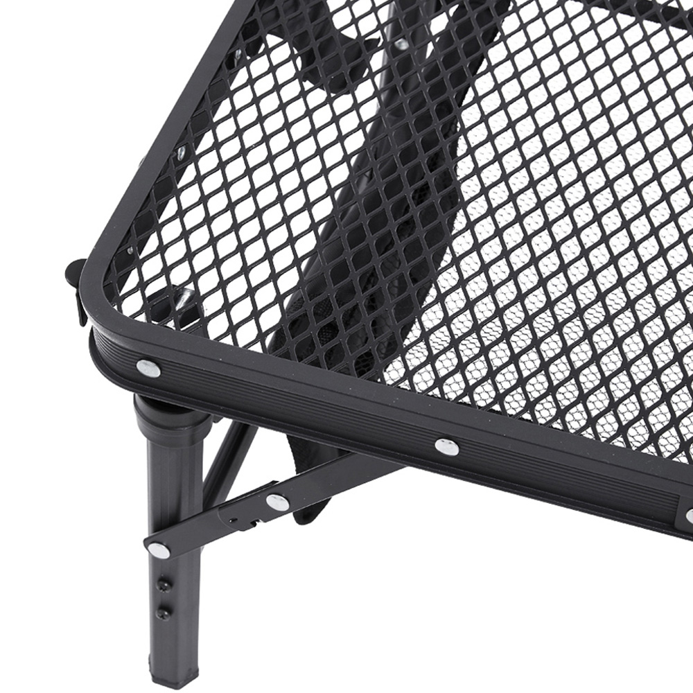 - Mesh tabletop drains water, keeping the surface dry