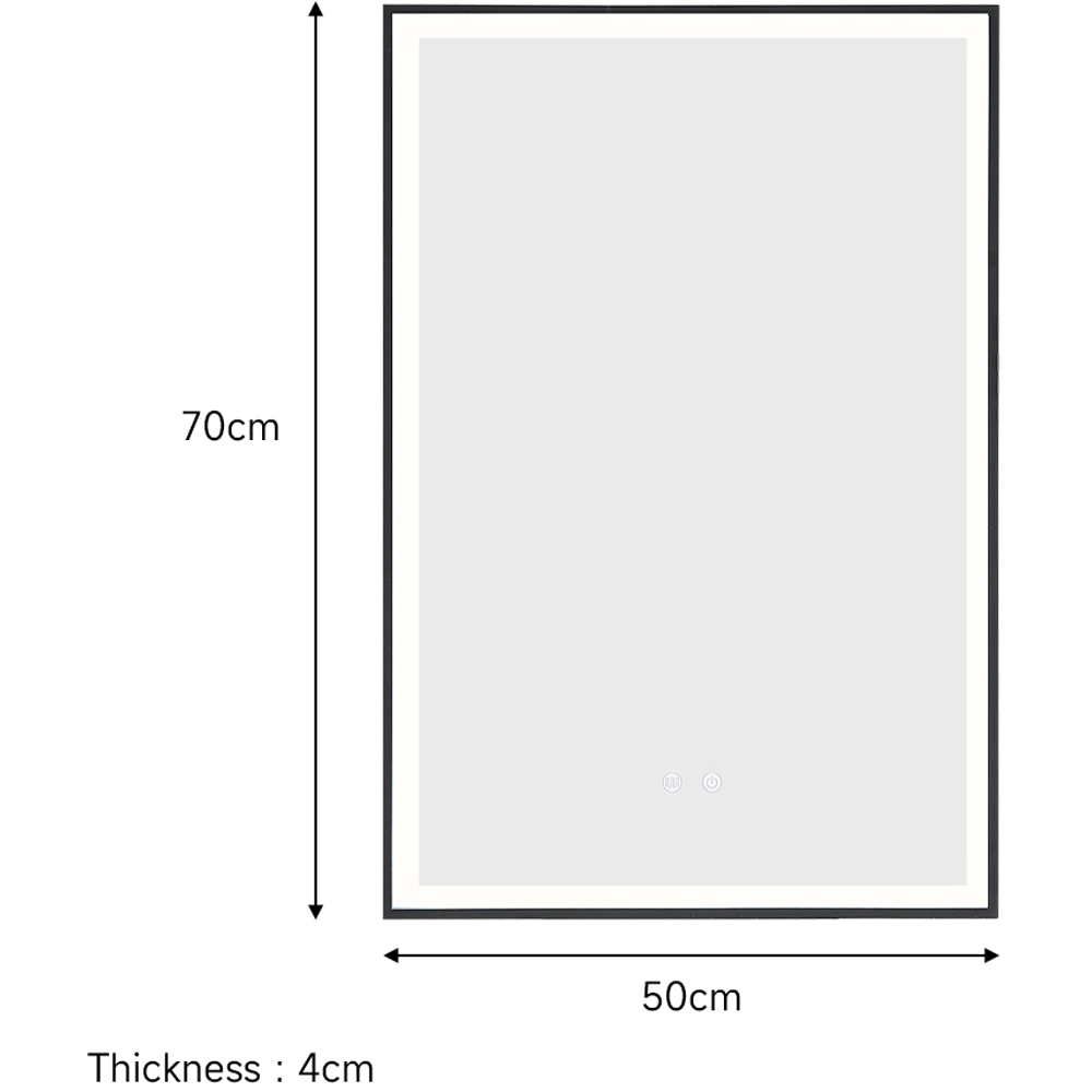 This LED mirror is the perfect balance between beauty and practicality. Boasting a clean rectangular frame with an LED light border, the mirror creates a sense of simplicity and light. The anti-fog technology ensures a crystal-clear view, no matter the humidity level in the room. Controlled by a touch sensor that allows you to adjust the light, the mirror can create a precise and comfortable environment for your daily grooming routine.