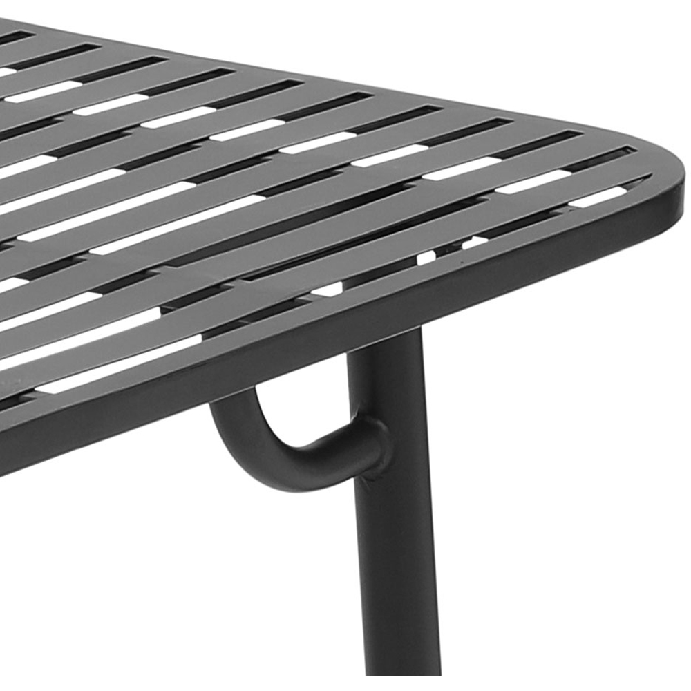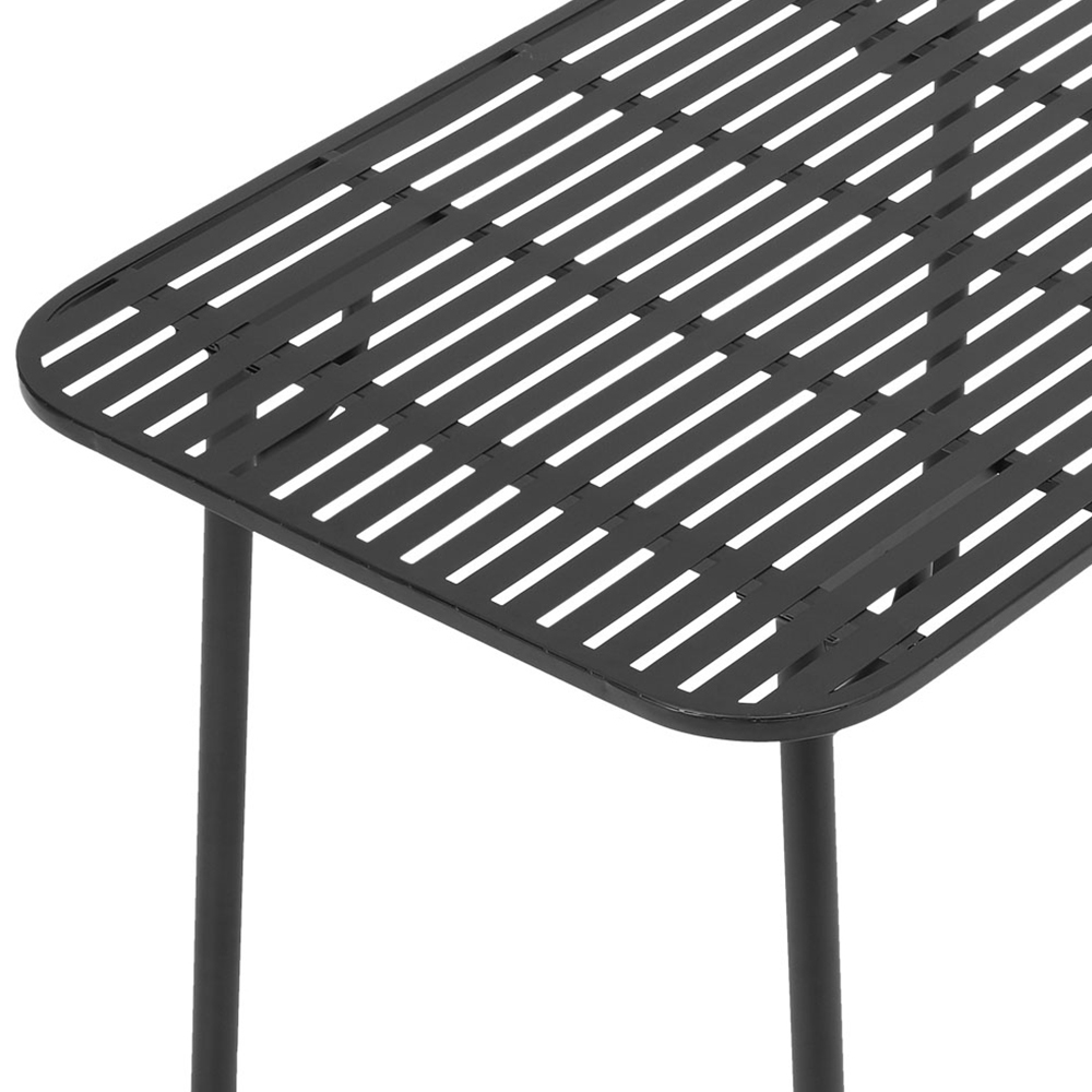 Elevate your sitting area with the Living and Home Black Rectangular Outdoor Garden Metal Table. This garden metal table is ideal for compact patios and contemporary backyards. It enhances your leisurely afternoons and evenings. The table is constructed from high-quality metal with an anti-rust and anti-corrosion powder coating. With these attributes, it withstands outdoor elements for lasting durability. It is lightweight and portable, an excellent option for gatherings and outdoor events. This modern tabletop features slats on four legs that make sure it's efficient with rain drainage. The table allows comfortable seating for four people. Size: 120cm.