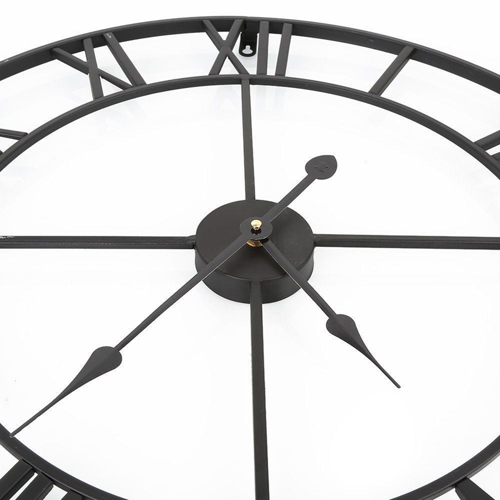 Make a beautiful addition to your home with the Living and Home Black Roman Vintage Round Metal Wall Clock 42cm. This large-format clock will uplift your home interior instantly. The metal-made frame and Roman numerals add a wealth of vintage flair. With this exclusive wall clock, you can quickly transform your flat living room into an enchanting one. It's a vintage European design that would liven up any space and can be a wonderful gift for any occasion.
