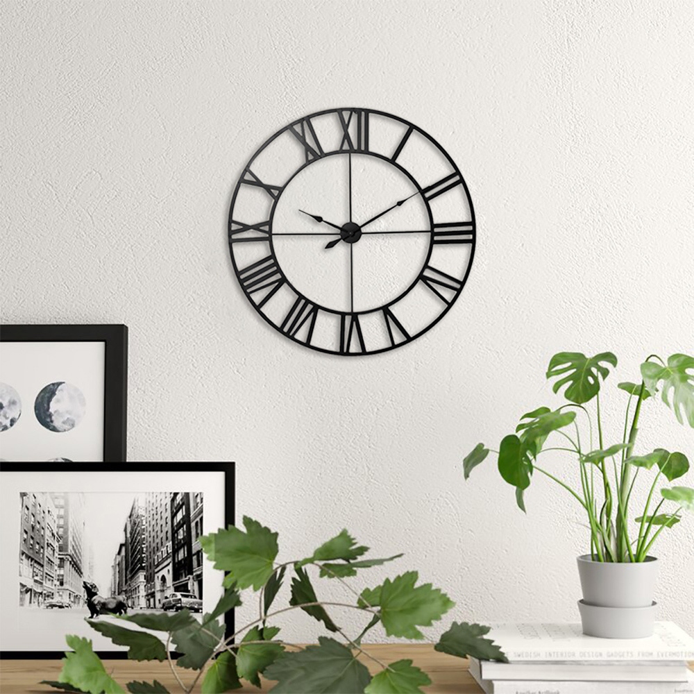 Living and Home Black Roman Vintage Round Metal Wall Clock 42cm