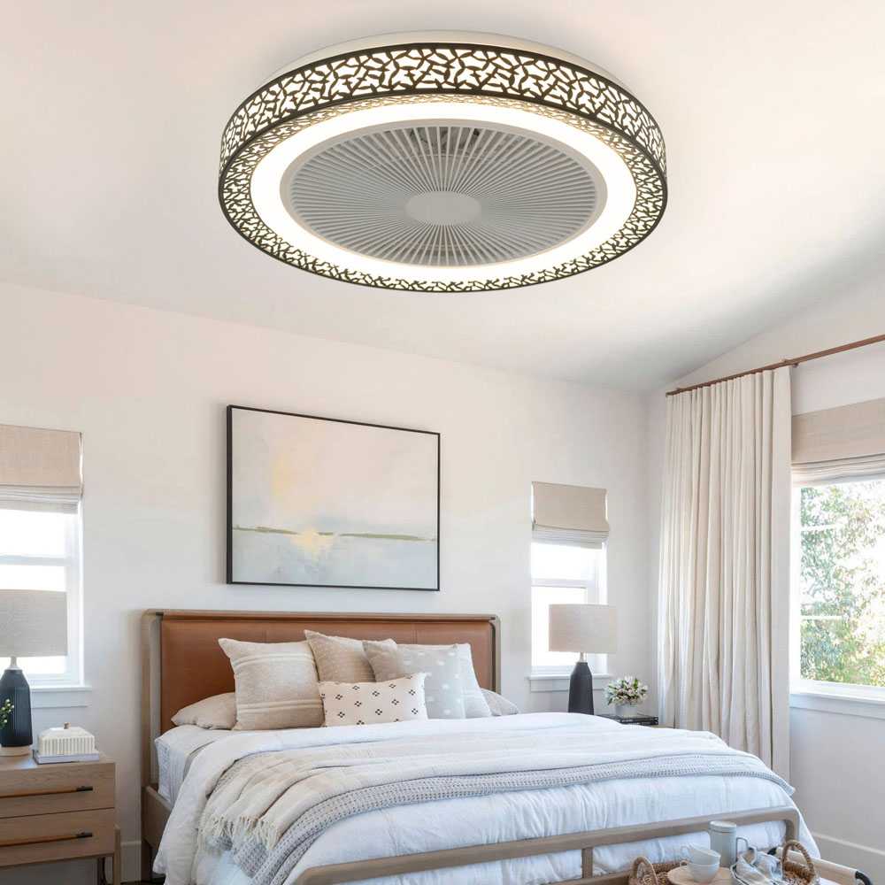 This LED Fan Light brings you summer comfort and ambient illumination. Crafted with an acrylic lampshade adorned with cutout patterns, it elegantly diffuses light throughout your space, creating bright light and shadow interplays. Choose from three light temperatures - warm, white, and neutral - to suit any mood or occasion. Additionally, the integrated fan delivers powerful cooling to combat the summer heat. Control settings in the comfort of your sofa via the remote or smartphone app for ease of use.