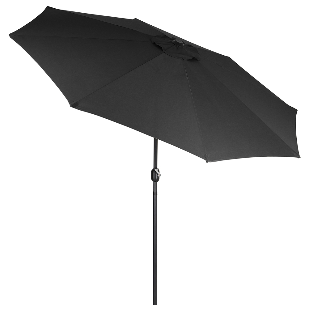 Enjoy your outdoors during those warm, sunny days with Livingandhome 3m Black Round Crank Tilt Parasol with No Base. This wide, water-resistant canopy comes with a crank mechanism for added convenience. It shields you and your fellow diners from damaging UV rays in the height of the summer. With high-quality 180G polyester fabrics and top vents - this parasol has a great function of UV protection and water repellant. It also comes with a tilt system for flexibly adjusting the umbrella to block the sunlight in different positions (Tilt 30 degrees vertically, cannot rotate horizontally). It is perfect as a beach umbrella, sun tent, rain shelter and more. Specifications: Material: Aluminium metal pole, 180g/m2 Polyester fabric cover. Steel rib quantity: 8. Aluminium pole diameter: 38mm. Looking for a way to keep your parasol secure and protected and enjoy some shade? Check out our selection of parasol bases, designed to keep your parasol in place while you relax and parasol cover to keep them protected.
