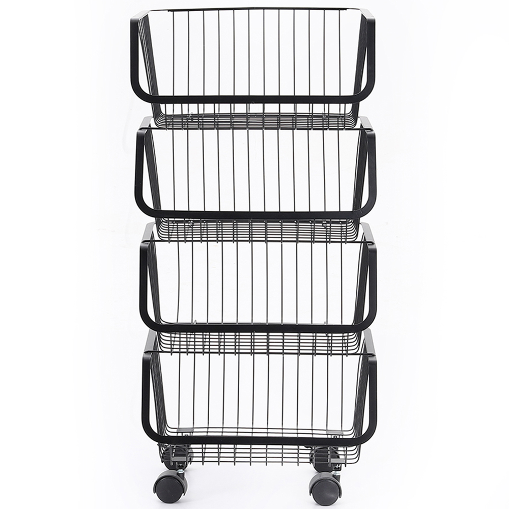 Living and Home Black Set of 5 Stackable Rolling Metal Wire Basket Trolley