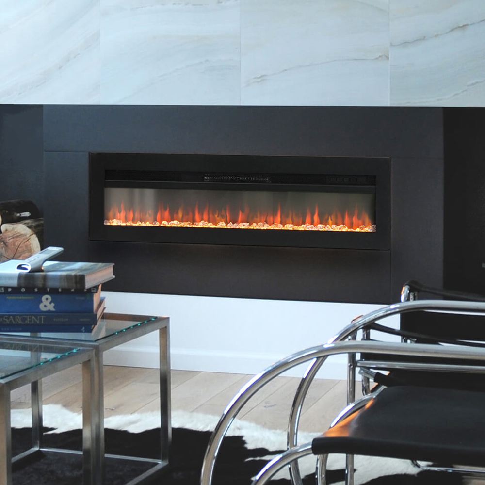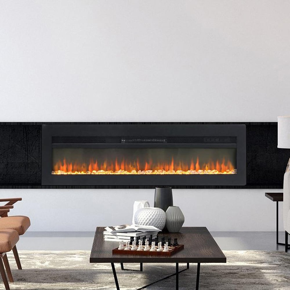 This electric fireplace can save you from a cold, boring winter. It has 9 adjustable flame colours; choose one particular flame colour to suit your current mood. What’s more, it’s powerful in producing heat. It has 5 temperature levels, with a temperature range between 62°F and 82°F. It can turn a freezing corner into a warm one without producing any noise or smoke. Heating coverage area up to 400 square feet. It has five adjustable brightness options that meet your needs. The fireplace showcases realistic burning scenes with crystal, offering a safe and efficient alternative to traditional fireplaces. It has three installation methods, including wall-mounted, recessed and free-standing. Hang it on the wall, mount it on the wall or simply put it on the ground with the coming brackets.