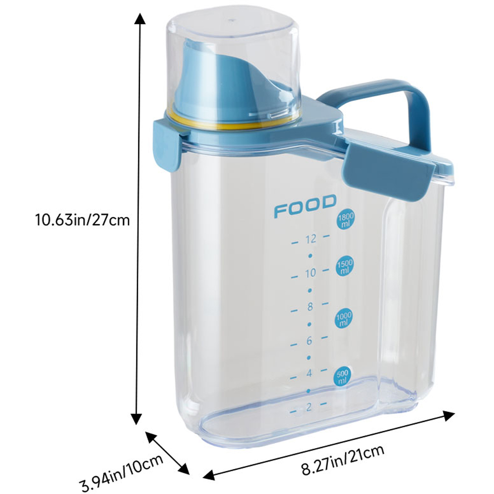 Enjoy perfectly crisp breakfasts every time with our cereal storage container. Its airtight sealing ring and snap-fit upper cover protect your breakfast staples from moisture and pests, keeping them fresh and delicious. With the integrated measuring cup as a lid, it ensures precise portions to prevent waste, and keeps out dust. Plus, the comfortable grip make it easy to carry, while its large capacity provides ample space for storing various goods to keep your kitchen orderly. Besides, this convenient multifunctional container is perfect for storing rice, snacks, or even pet food.