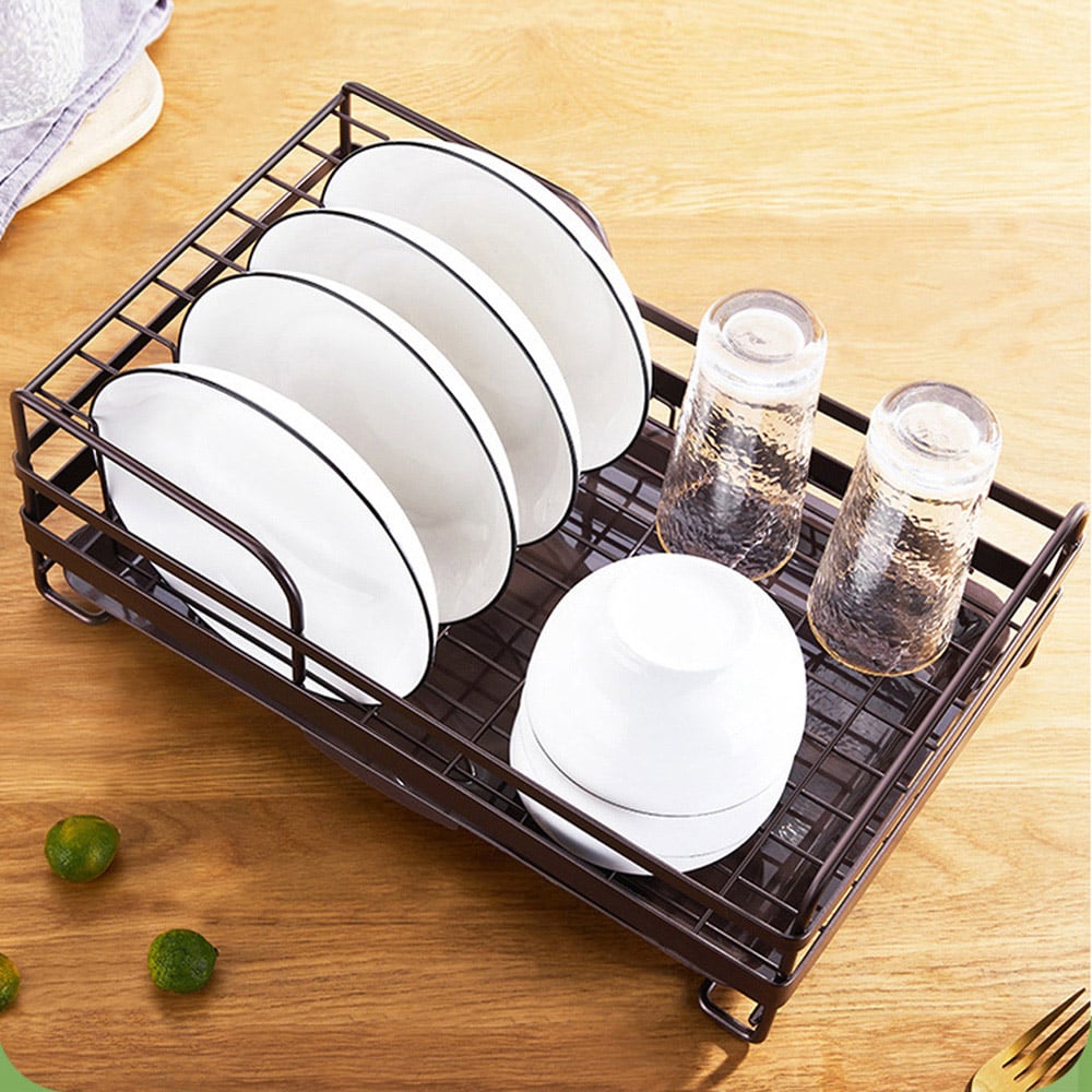This metal cutlery rack keeps your kitchen tidy while blending in beautifully with a modern home. Made from powder-coated carbon steel, it's rust-resistant, durable, and a breeze to clean. The open shelf design helps water drain quickly into the tray below, so your dishes dry faster and your countertops stay mess-free.