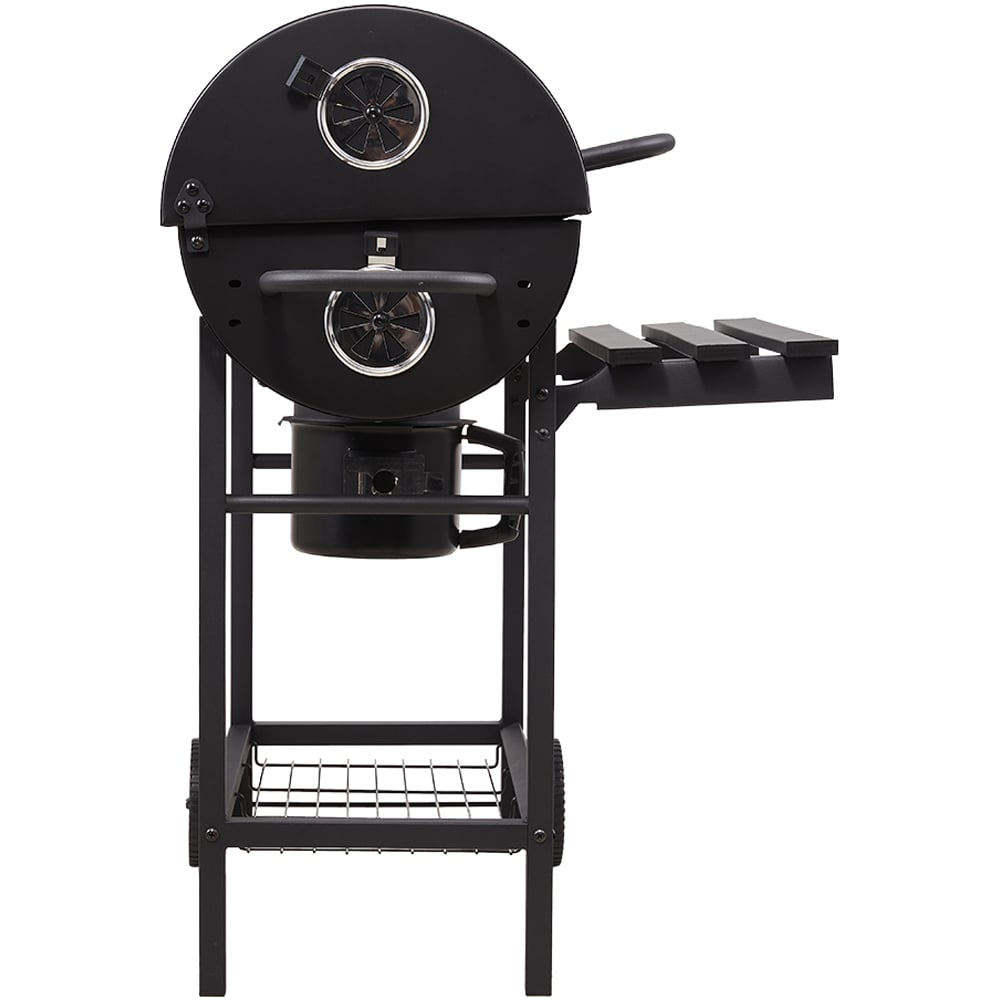 Upgrade your outdoor cooking experience with this versatile charcoal barbecue grill. Crafted from durable, powder-coated metal for enhanced rust resistance, it features adjustable vents to ensure full charcoal combustion - perfect for smoking and advanced cooking. Its spacious, chrome-plated grill grate ensures even heat distribution, while the handled lid allows safe, convenient use. Front and side folding shelves, along with a bottom shelf, offer extra prep and storage space, making grilling effortless. Ideal for family gatherings and outdoor picnics.