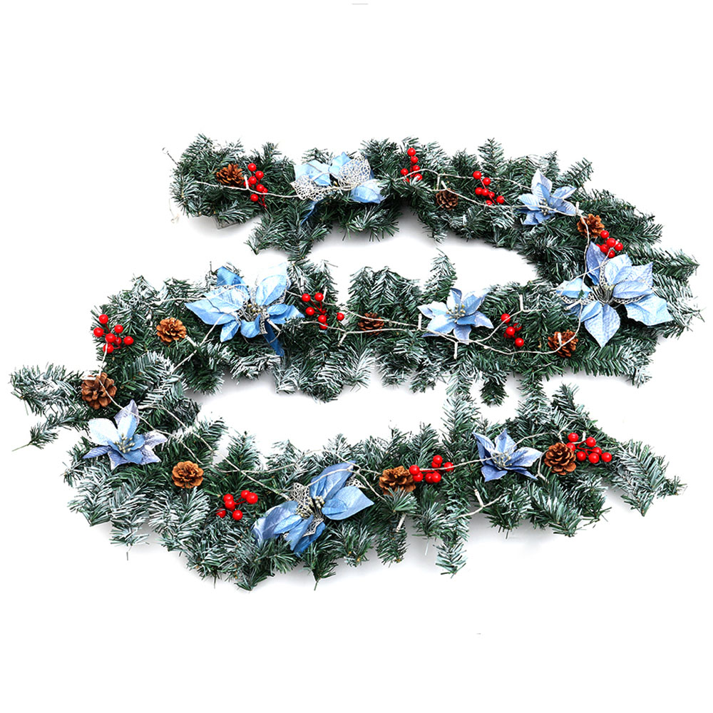 Living and Home Christmas Garland with Blue Flower and Berries 270cm