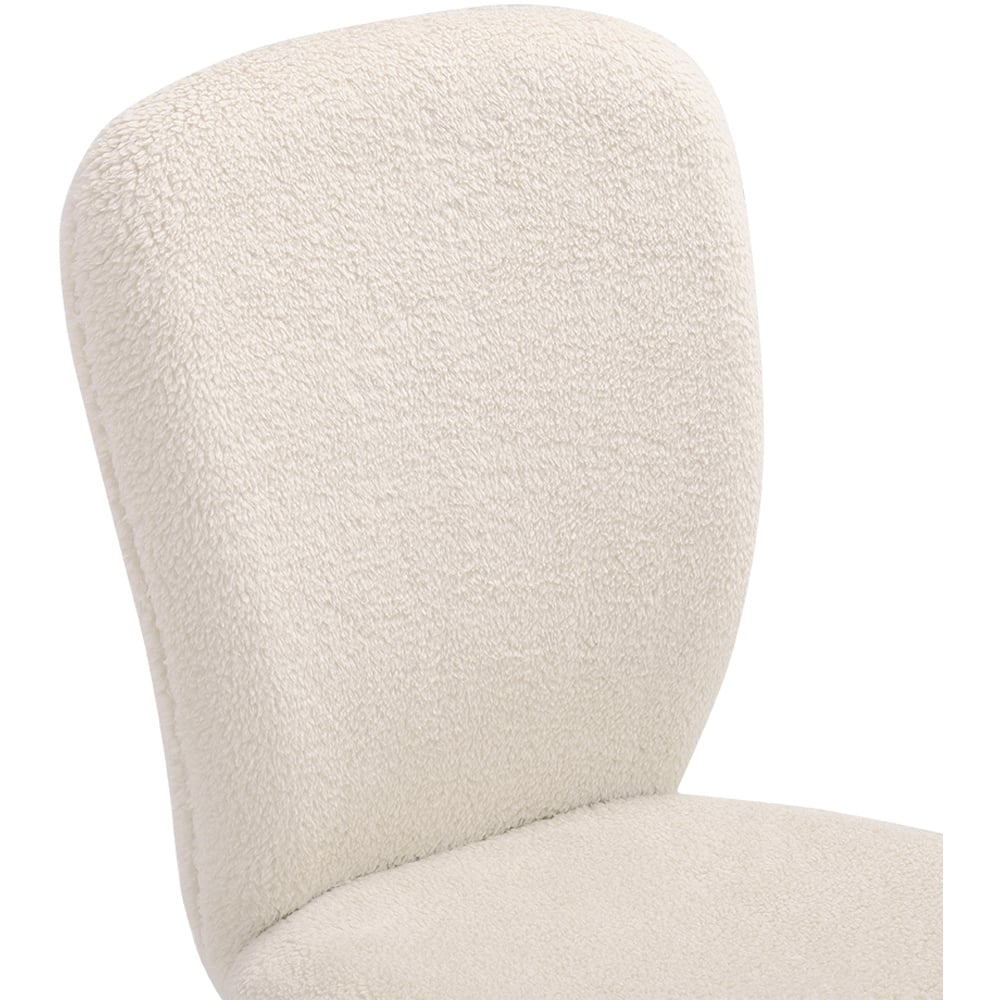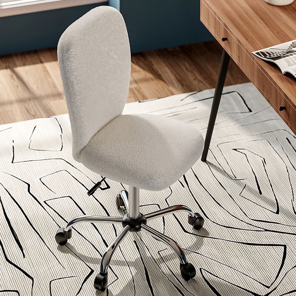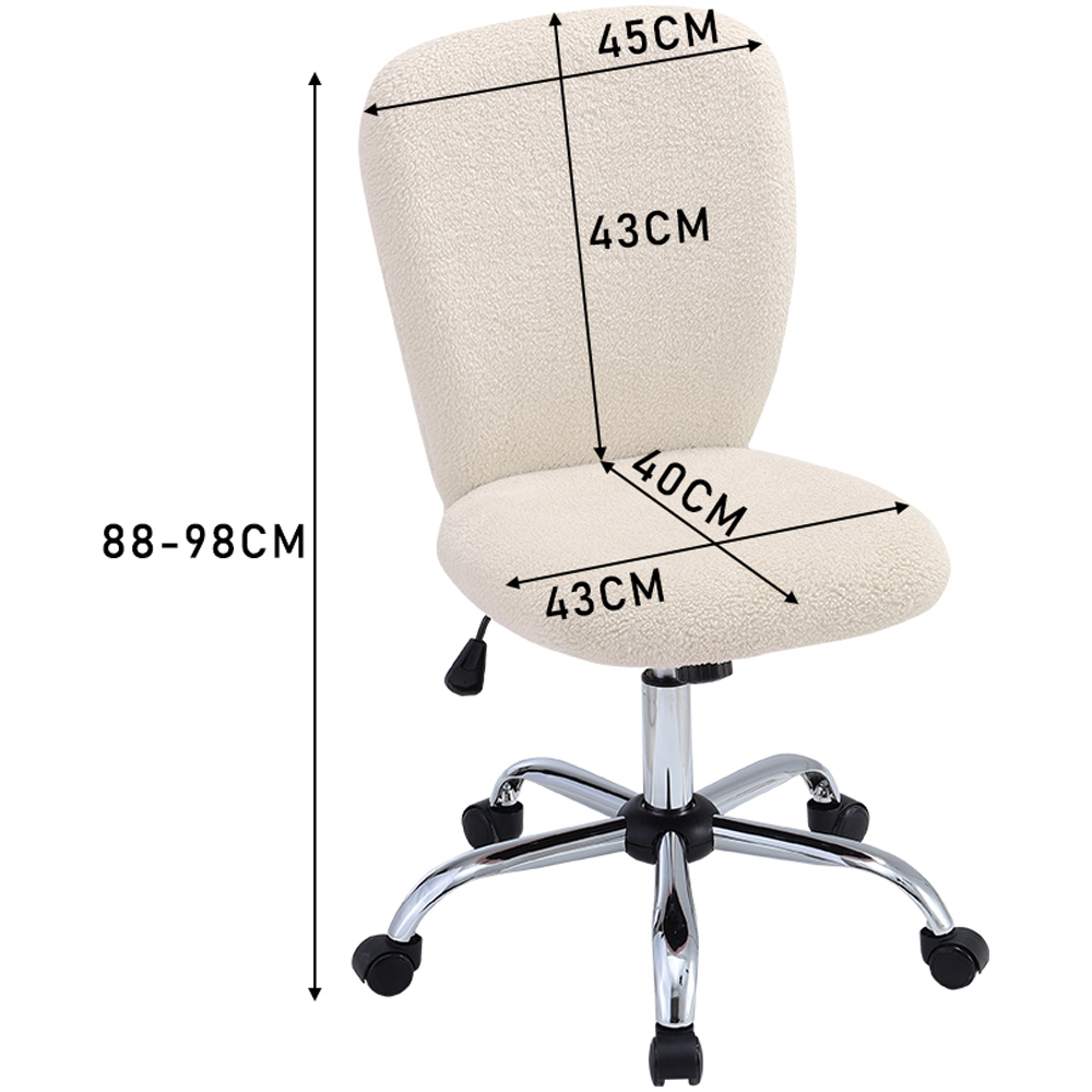 Enhance your office space with the Living and Home Cream Plush Office Chair with Wheels. This plush chair features an elegant sea shell silhouette, offering superior comfort during work. Its streamlined design fits any office setting, and the armless structure allows for easy desk tuck-away. With a smooth-rolling base and height adjustment, it blends style and practicality effortlessly.