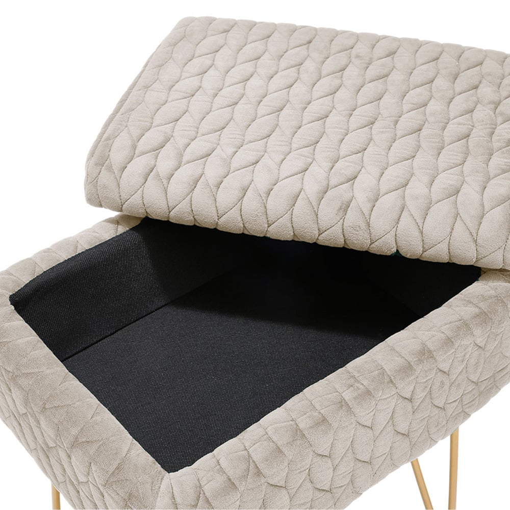 Living and Home Cream Rectangle Upholstered Ottoman Vanity Stool with Storage