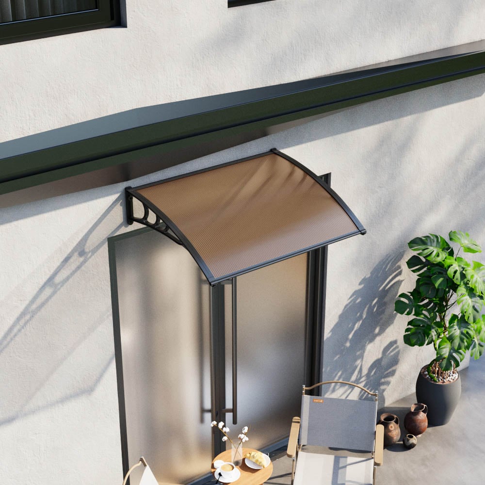 Upgrade your outdoor space with the stylish yet functional awning canopy. Its sturdy high-strength plastic brackets and aluminium alloy frame ensure durability, while the PC panel prevents rain/snow buildup with sleek aesthetics. Offering UV protection from harsh sunlight, it's easy to install on doors, windows, patios or shops. Connect multiple units for expanded coverage that blends practical shelter with visual charm.