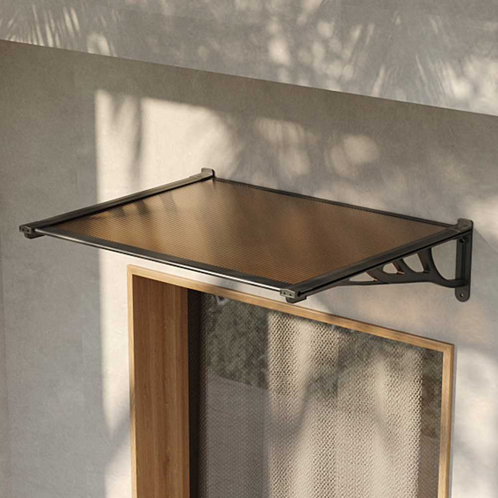 Upgrade your outdoor space with this stylish yet functional awning canopy. Its sturdy, high-strength plastic brackets and aluminium alloy frame ensure durability, while the PC panel prevents rain and snow buildup with sleek aesthetics. Offering UV protection from harsh sunlight, it's easy to install on doors, windows, patios or shops. Connect multiple units for expanded coverage that blends practical shelter with visual charm. It can withstand 8kg per square load for reliable weather resistance and enables rain-safe window ventilation for fresh air without leaks. It comes complete with all fittings for an instant, tool-free setup. Dimensions: 1.2 x 0.9m.