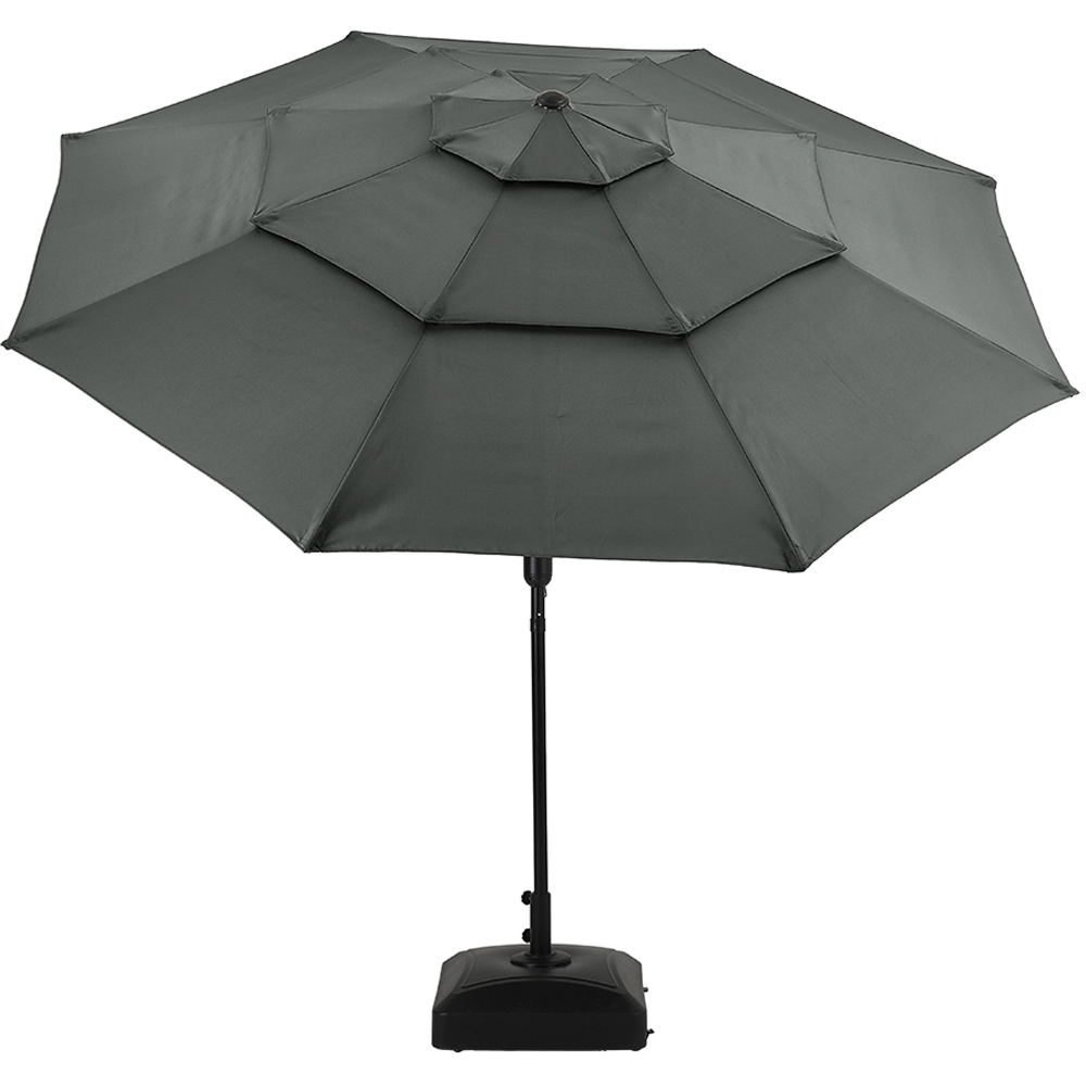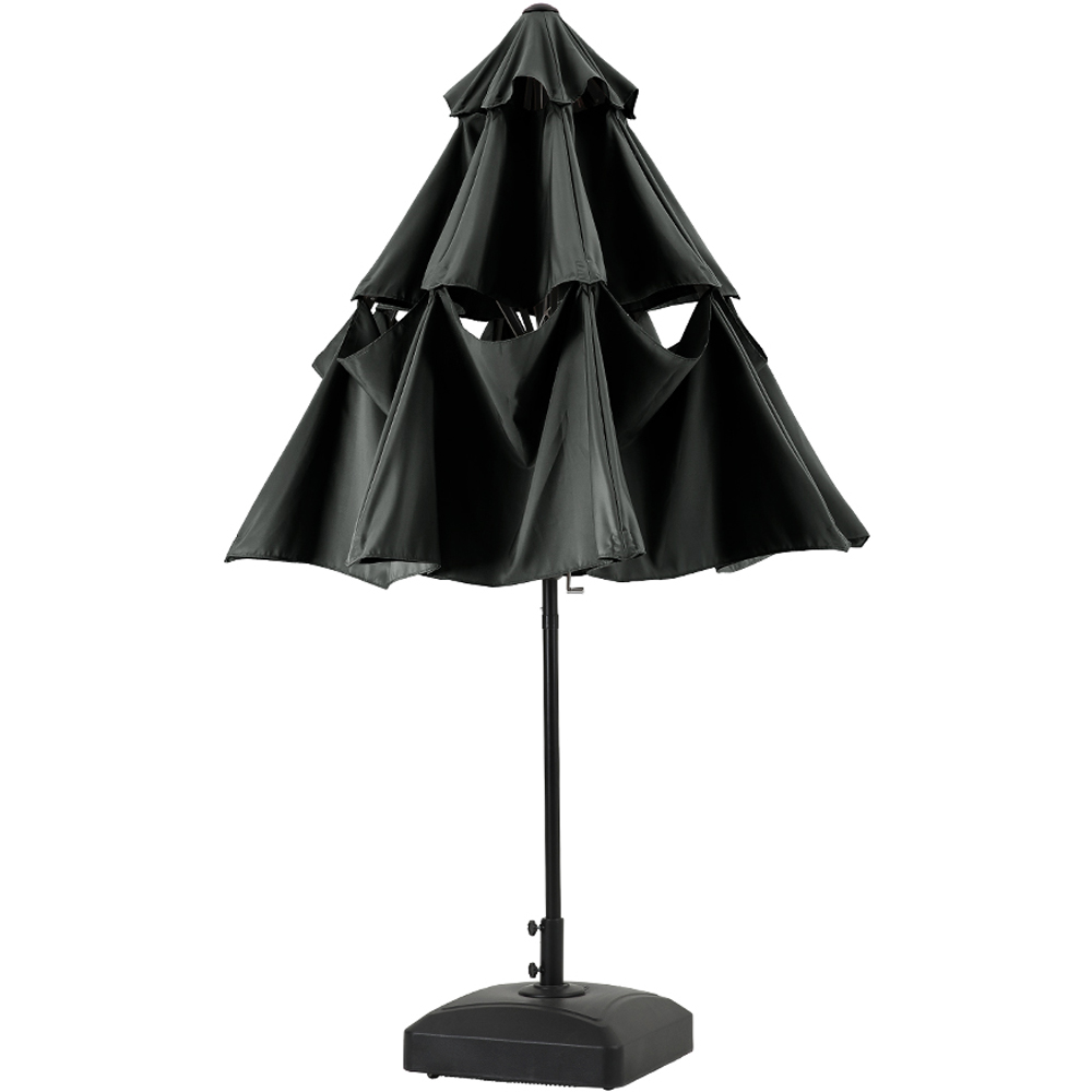 Create your own oasis with a 3-Tier Umbrella, an essential outdoor accessory for leisure and work alike. Crafted with a multi-layer structure and resilient, weather-resistant materials, this umbrella delivers reliable shade on scorching sunny days or during light drizzles. Featuring a convenient push-button tilt and crank mechanism, it allows for easy adjustment of the angle and height, ensuring that outdoor moments are always experienced in comfort and style. Better yet, this set contains a base that is not only good-looking but also supportive.