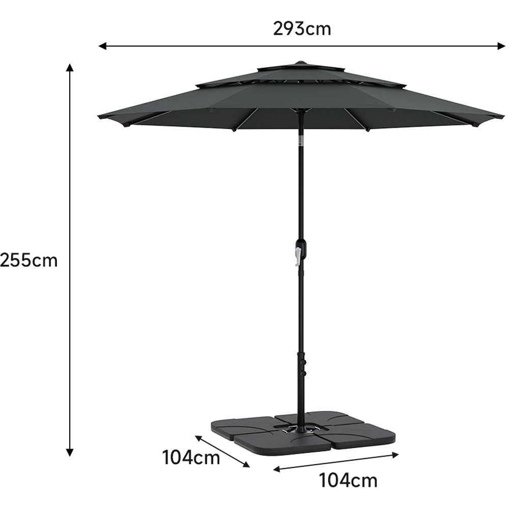 Outsunny 2 Tier Black Cantilever Parasol with Cross Base 2.5m