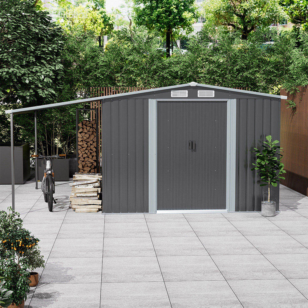 Living and Home 8 x 8ft Dark Grey Outdoor Metal Storage Shed with Lean To