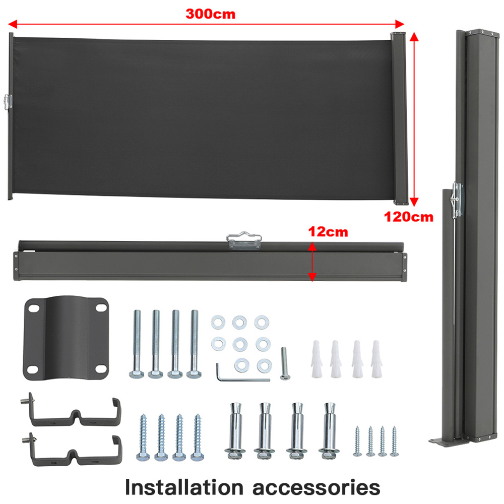 Living and Home Dark Grey Retractable Side Awning 3 x 1.2m
