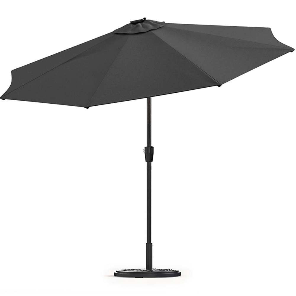 This umbrella exudes a sense of holiday relaxation, sure to evoke memories of the best vacations. Pleasing to the eye and easy to use, it features a convenient crank lift for easy opening and closing. The manual tilt allows for angle adjustments, creating the ideal shade against the sun and wind. With built-in LED strips, this umbrella transforms at night, creating a dreamy atmosphere that enhances any outdoor environment. Better yet, this set contains a base that is not only good-looking but also supportive.