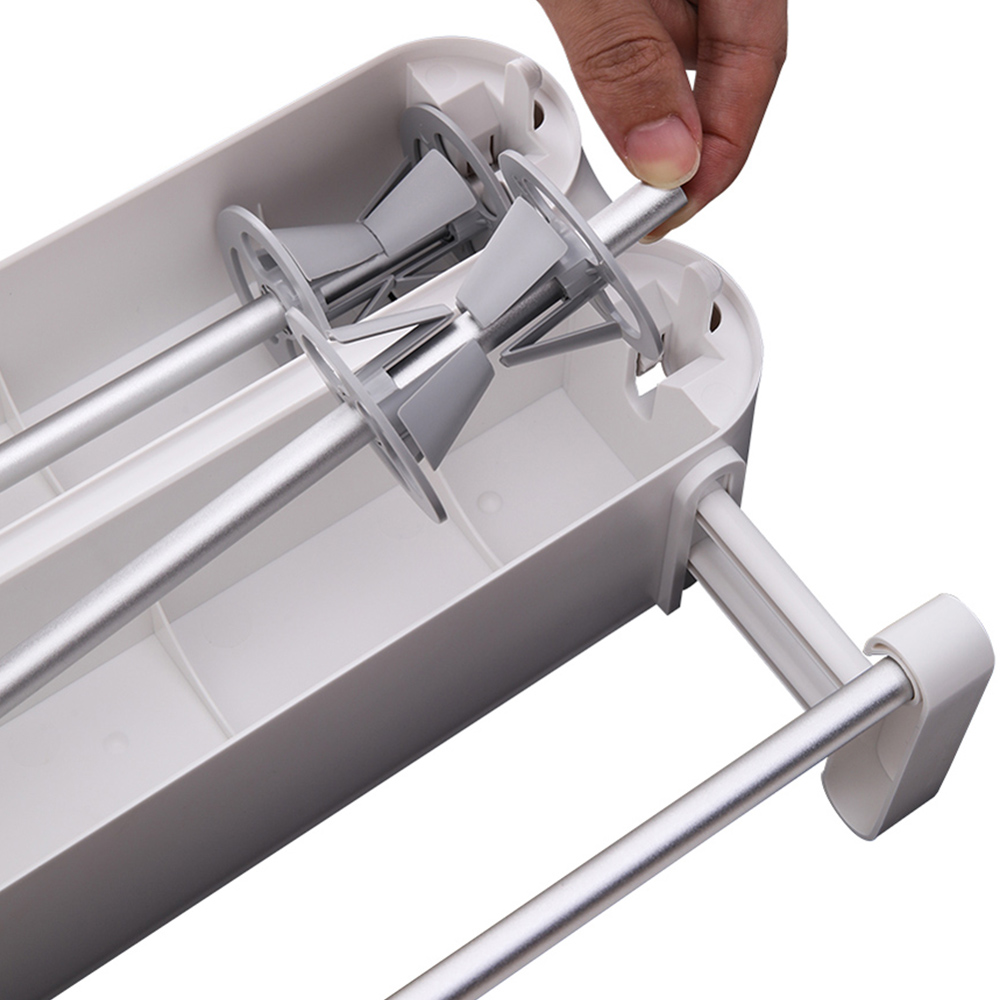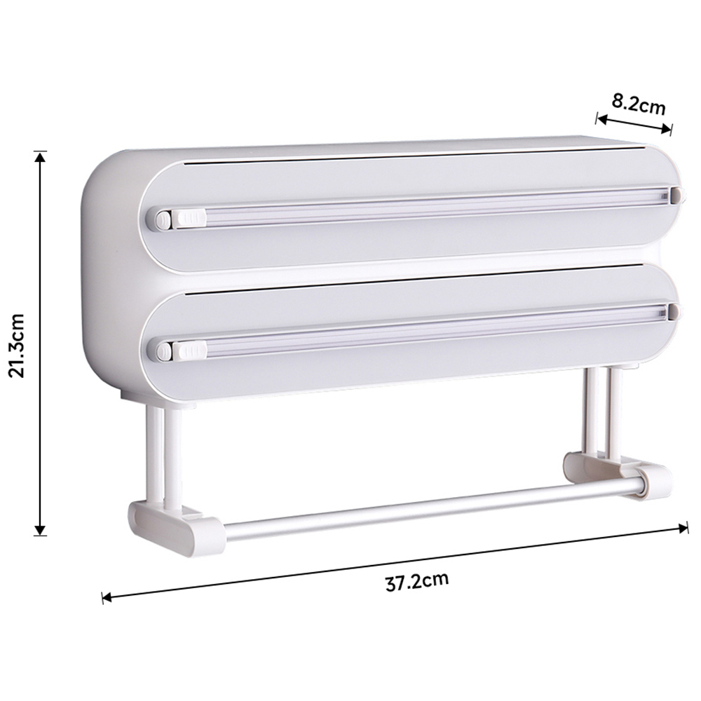 Simplify your kitchen tasks with the Living and Home Dual Layer Magnetic Plastic Wrap Dispenser with Cutter. Featuring a dual-layer configuration, this innovative dispenser neatly holds cling film, aluminium foil, and parchment paper, ensuring your essential kitchen supplies are organised and easily accessible. Integrated cutters provide clean and precise cuts, eliminating the frustration of tangling wraps. Additionally, the handy hanging rod at the bottom offers a convenient spot for quick access to your kitchen paper towels, combining practicality and efficiency.