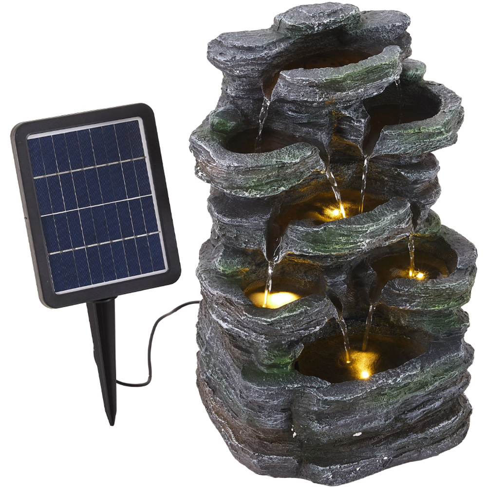 Enhance your garden's appeal with this stunning water feature designed to resemble a stack of pebbles, effortlessly blending elegance and tranquillity. With its rustic grey finish intertwined with hints of green, it mimics the look of natural stone, bringing a touch of nature to your outdoor area. As the water trickles down, it creates a captivating sound that adds life to your garden space. Make the most of sunny days by harnessing the beauty this fountain provides, powered by environmentally friendly solar energy. The lightweight and weatherproof resin construction makes installation a breeze, and the solar panel can be easily positioned by inserting it into the ground. This captivating addition is ideal for small gardens, patios, and balconies.
