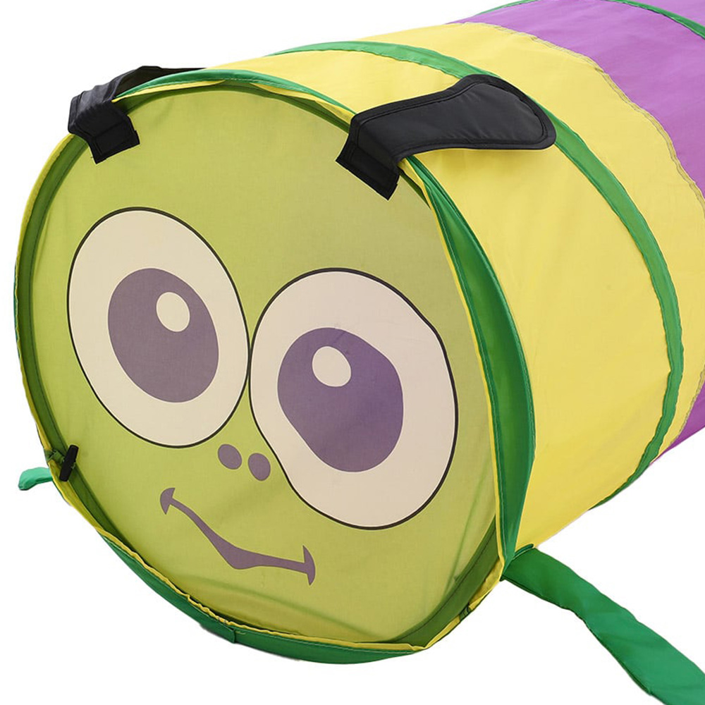 A great choice for your little explorers, this Foldable Crawl Play Pop-up Tunnel from Living and Home will make a fun addition to the playroom. It features a cute caterpillar with a smiling face that winds its way along the green, pink, blue, purple and yellow tunnel, and the fabric rustles when crawling. This tunnel is sure to create a fun experience for both boys and girls aged three and up. It is made with quality polyester fabric and thick steel wiring, making it both safe and long-lasting. What's more, it is both a fun activity and an inviting hidey-hole at the same time. Thanks to the pop-up feature, this play tunnel can be set up in no time - ready for fun and games. Approximately 6ft in size, it can be used as a single tunnel or attached to play tents or teepees!