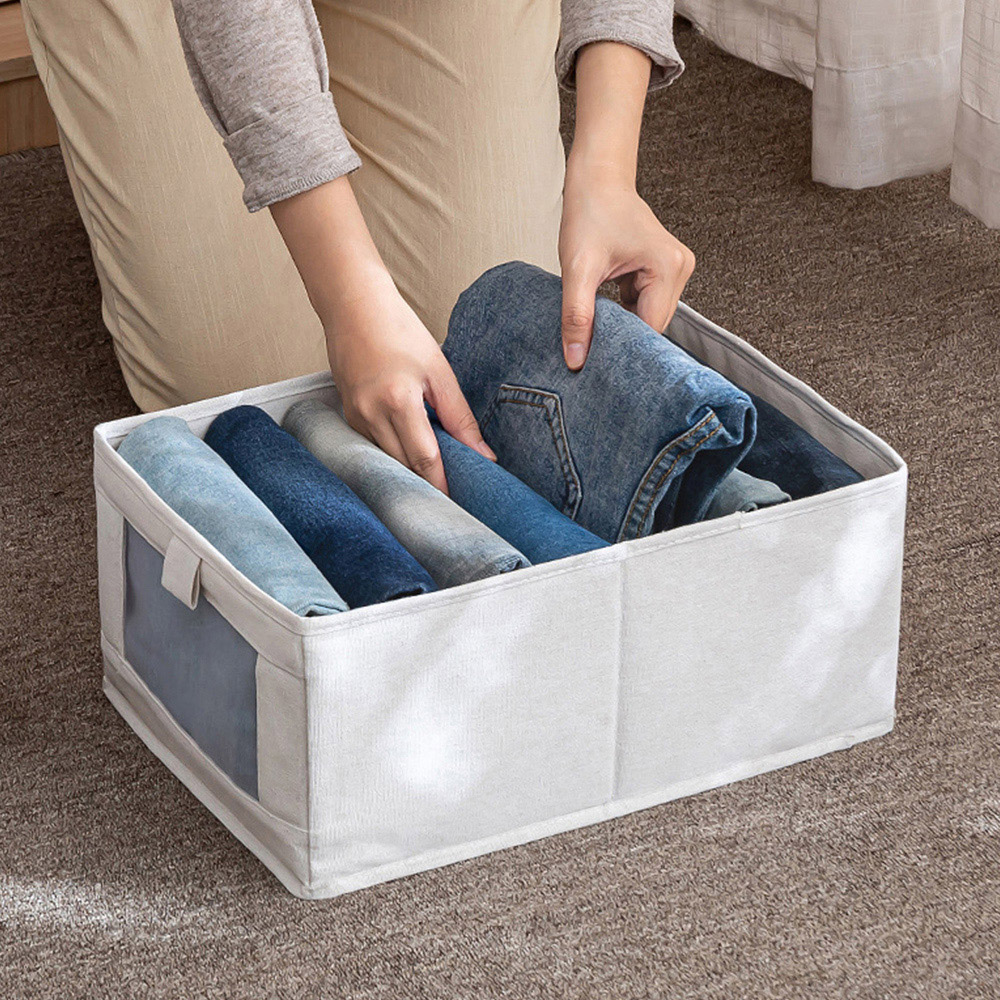 Tackle your closet clutter effortlessly with the functional Living and Home Foldable Fabric Clothes Storage Organiser. If you're ready to organise but not sure where to start, this versatile box serves as the perfect solution. Designed in an optimal size to fit seamlessly into most wardrobes, it provides a stylish and practical way to store and categorise your underwear, jeans, T-shirts, and other clothing items. With its open-top design, accessing your belongings is straightforward, allowing you to maintain a neat and tidy appearance in your wardrobe. It combines functionality with aesthetic appeal, making organising feel less like a chore.