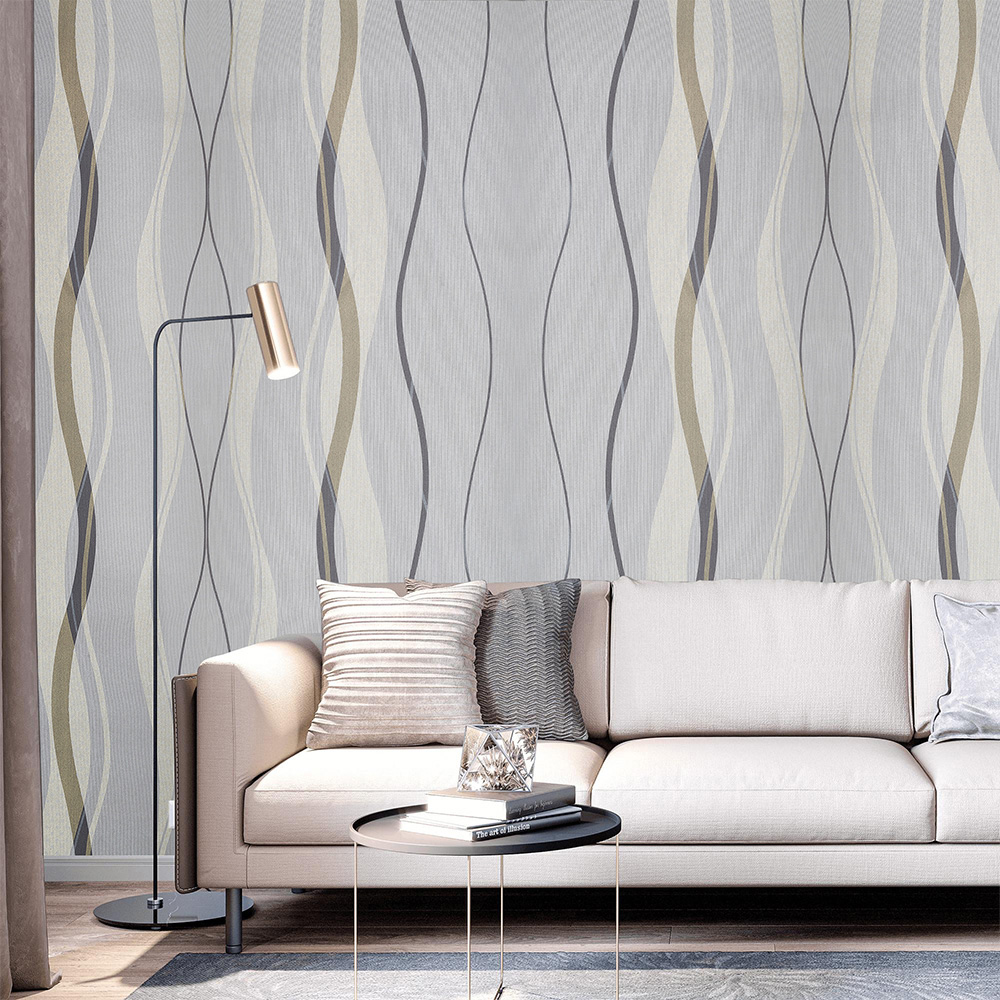 Give a touch of modern style to your walls with this Living and Home Geometric Curving Linear Wallpaper. It perfectly combines minimalism with artistic sense, bringing a striking visual landscape to your home space. It features an extra thick non-woven construction which ensures durability and long-lasting performance. The design of the wallpaper features subtle curves that, while seemingly uncomplicated, are carefully crafted to infuse the space with both elegance and dynamism. The proportions of the stripes are well-balanced, creating an illusion of expanded space and drawing attention to the room's architectural layers.