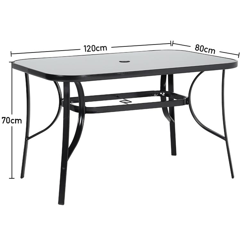 Transform your outdoor experience with this stunning Garden Dining Table, designed to impress in both indoor and outdoor settings. Picture yourself sipping morning coffee or enjoying brunch with friends around this elegant table. Featuring a convenient umbrella hole, this piece combines comfort and practicality seamlessly. Crafted with a sleek metal framework, it promises durability and style, making it an ideal addition to any garden, patio, or bistro. Its simple yet chic design enhances any space, creating the perfect atmosphere for dining and relaxation. This contemporary furniture not only serves a purpose but also elevates the overall aesthetic of your outdoor areas. Dimensions: H70 x W80 x L120cm.