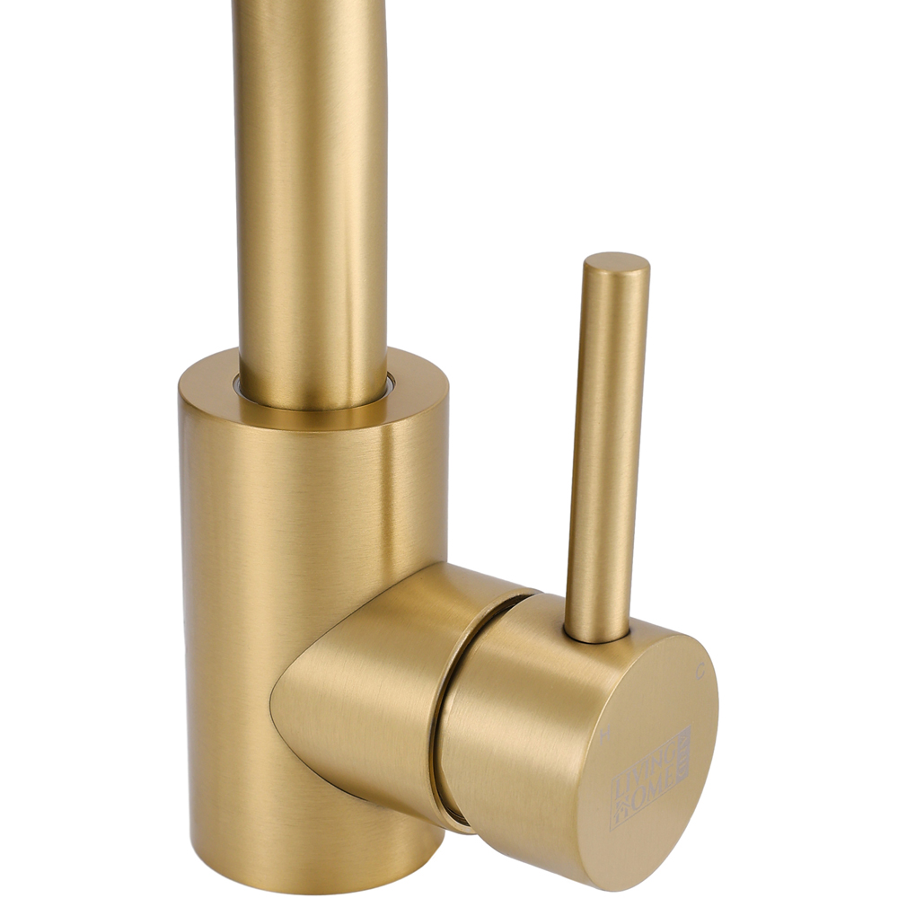 Elevate your kitchen experience with the Living and Home Gold Arc Single Handle Faucet with Swivel Spout. It is a masterpiece of chic and minimalist design. The elegant arc of the faucet, combined with its striking gold finish, adds a touch of sophistication and transforms your sink into a stunning focal point. The 360° swivel spout provides precise control over water flow, making it perfect for vessel sinks. Crafted from premium stainless steel and brass, this faucet promises both durability and reliability, ensuring it will be a stylish and functional addition to your bathroom for years to come.