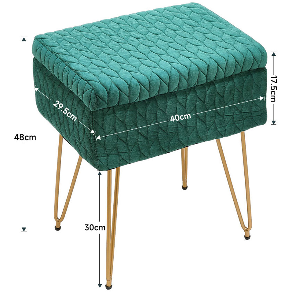 Living and Home Green Rectangle Upholstered Ottoman Vanity Stool with Storage