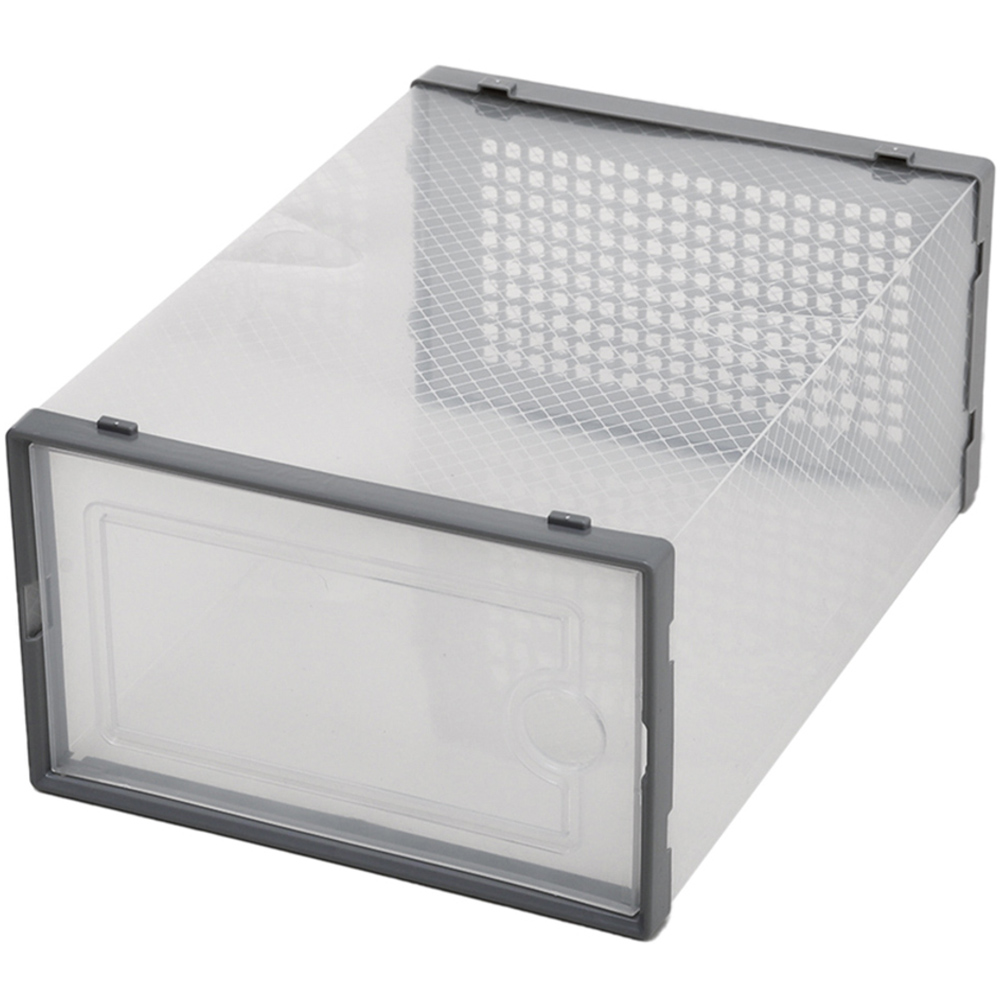 Organise your shoe collection with the Living and Home Grey 12 Piece Stackable Plastic Shoe Organiser. Made from durable, non-toxic plastic, these boxes feature ventilation holes to ensure air circulation and prevent odours. The transparent design allows you to easily see and access your shoes while saving space. Transform your show storage area with this neat addition.