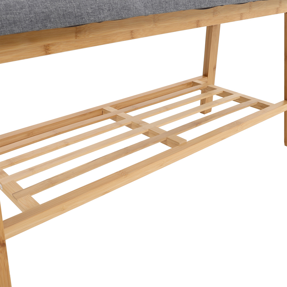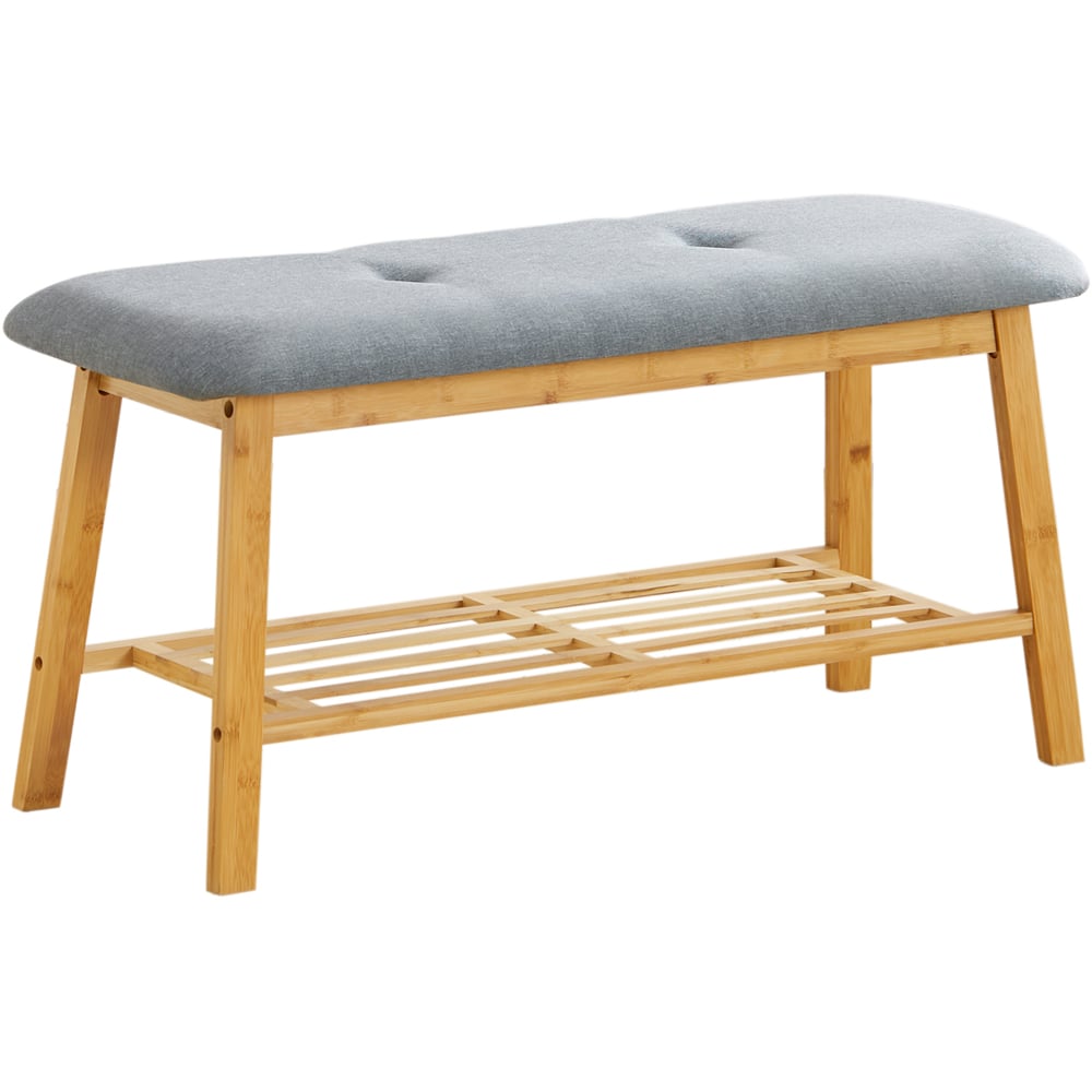 This bamboo shoe bench is the perfect blend of style and functionality for your entryway. Featuring clean, simple lines, it offers a charming yet minimalist look that complements any decor. The foam-filled seat provides comfortable support while you change your shoes, and the sturdy bamboo lower rack can hold up to three pairs of footwear or be used to store other items. Practical and attractive, this bench is sure to earn you plenty of compliments.