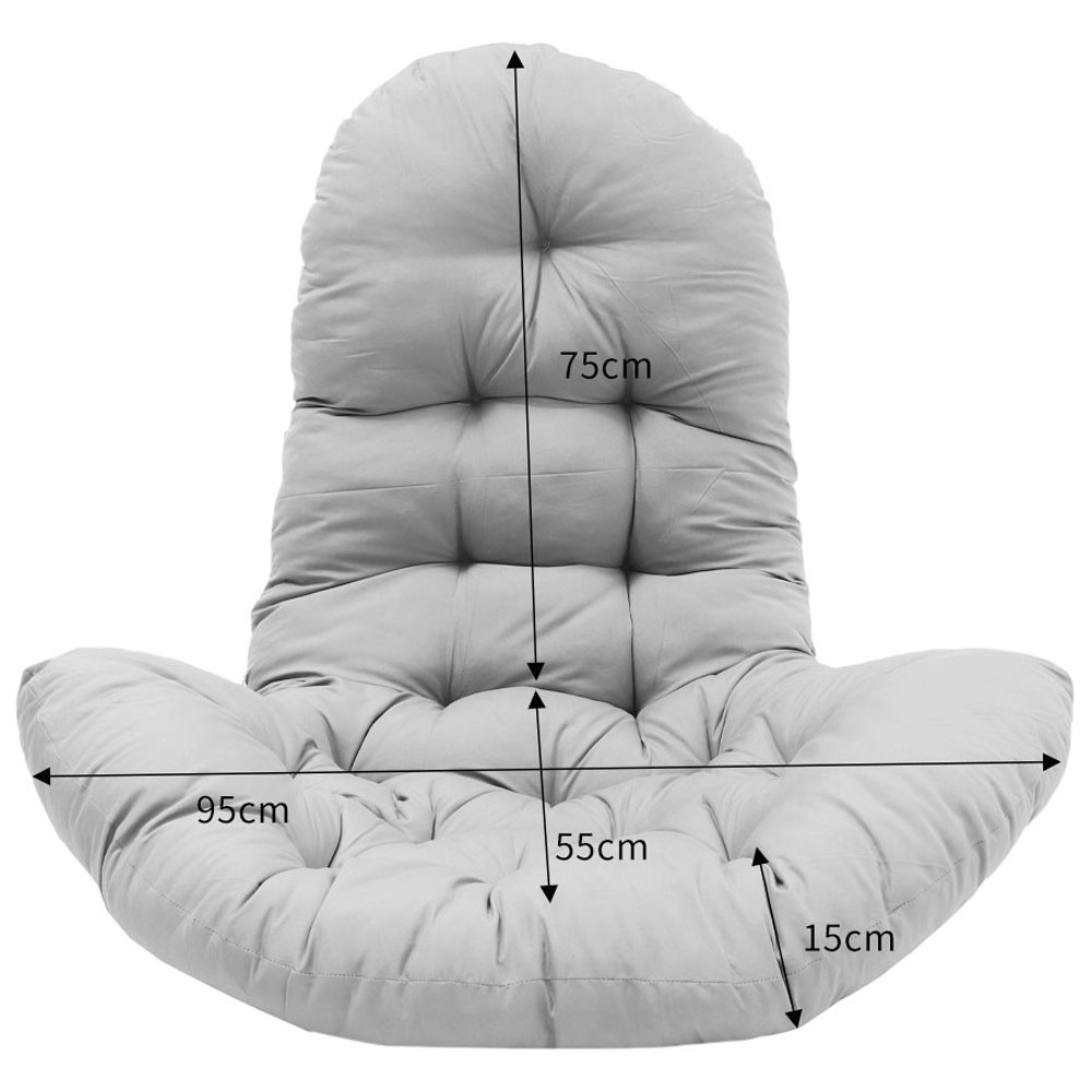This Living and Home Grey Hanging Egg Chair Thick Cushion is suitable for use in every season. Thanks to the breathable polyester cover and the dense cotton filling, it is not too hot in summer nor too cold in winter to sit on. Thickly padded with selected cotton, the cushion is deep enough to offer a comfortable and soft seat for you to relieve your body strain. Also, the high backrest is designed for added comfort. Ideal for hanging chairs, egg chairs and swing chairs. Size: 75 x 95 x 55cm. Thickness: 15cm.