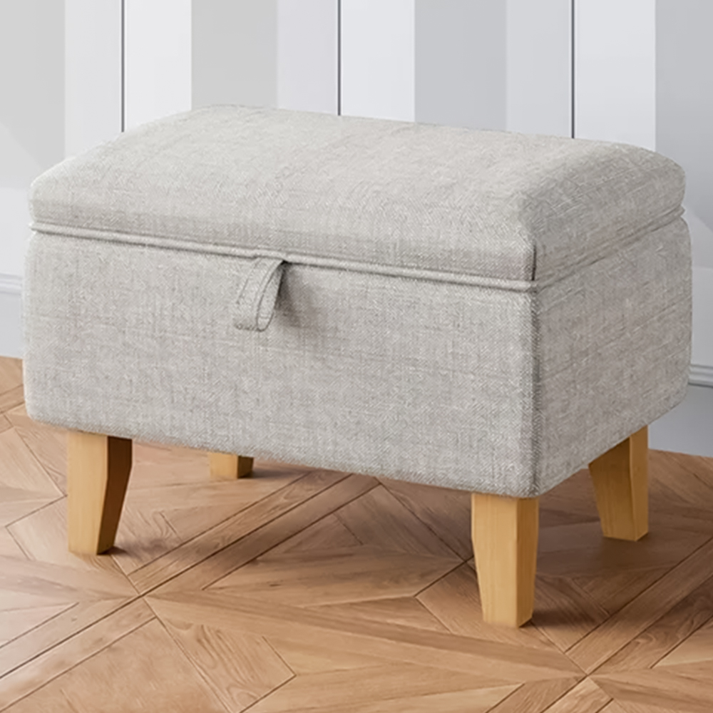 Living and Home Grey Linen Upholstered Storage Ottoman