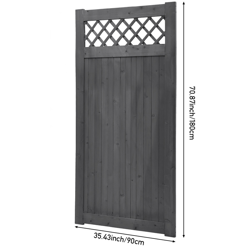Bring rustic charm and reliable security to your outdoor space with this beautifully crafted wooden garden gate. Featuring a natural wood grain slatted surface and an elegant hollow rhombus lattice, this gate perfectly blends timeless aesthetics with sturdy functionality. Designed to create a welcoming yet secure entrance, it serves as a protective barrier to keep pets and children safe while enhancing the overall appeal of your garden. Built from high-quality wood with expert craftsmanship, it is resistant to wear and requires minimal maintenance, ensuring long-lasting durability and beauty in any outdoor setting. Plus, installation is hassle-free with included hardware and easy-to-follow instructions (includes two 8-inch T-hinges, one 8-inch stainless steel latch, lock not included), allowing you to set it up quickly and enjoy both privacy and style in your garden. Dimensions: H180 × W90 × D2.5cm.