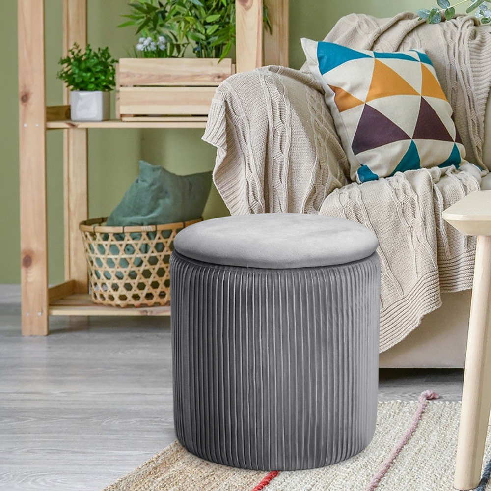 Living and Home Grey Round Pleated Storage Ottoman