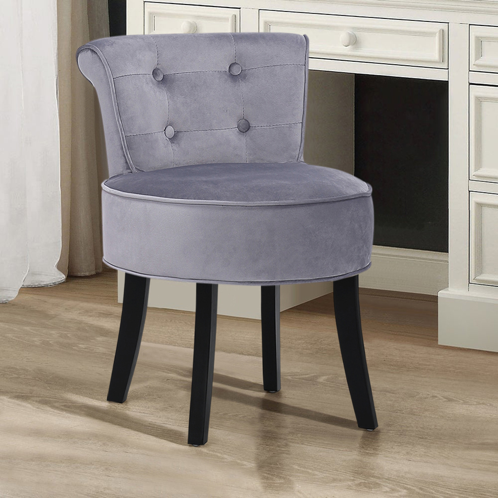 Add elegance to your makeup routine with the Living and Home Grey Velvet Vanity Stool. Upholstered in soft fabric with foam padding, it offers ultimate comfort. The stool's high backrest provides support, while the anti-slip pads ensure stability, making it a perfect match for any dressing table.